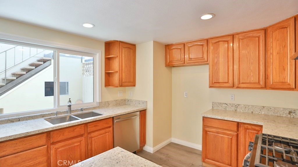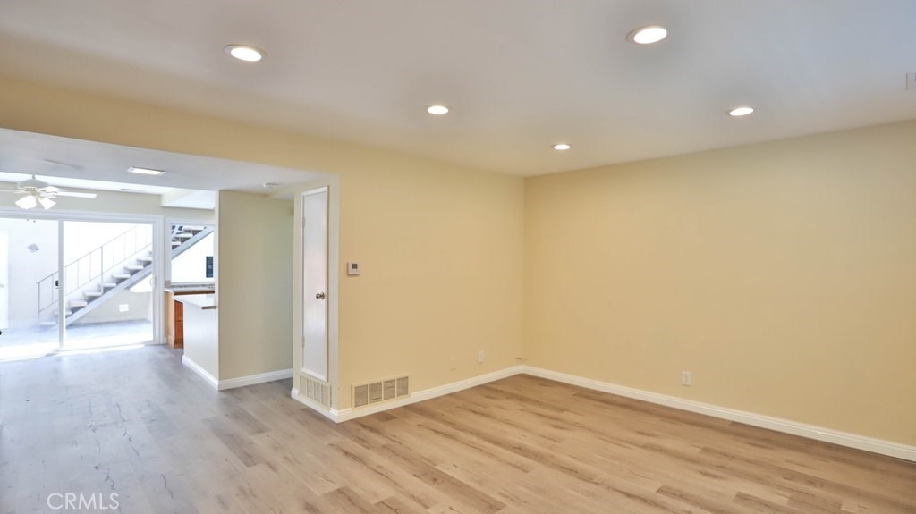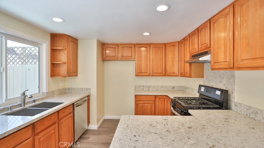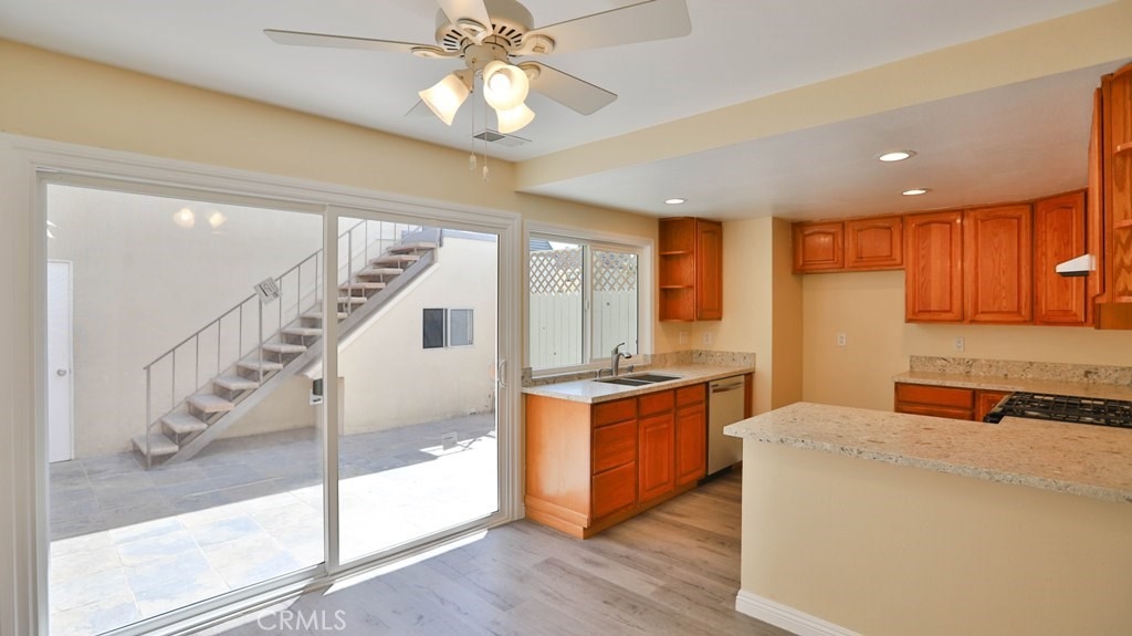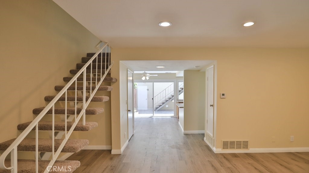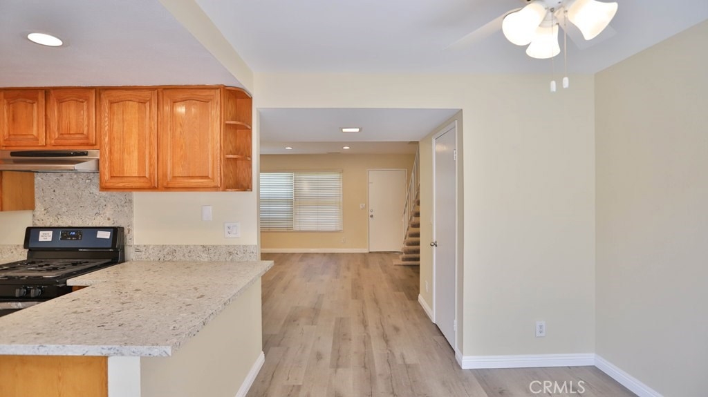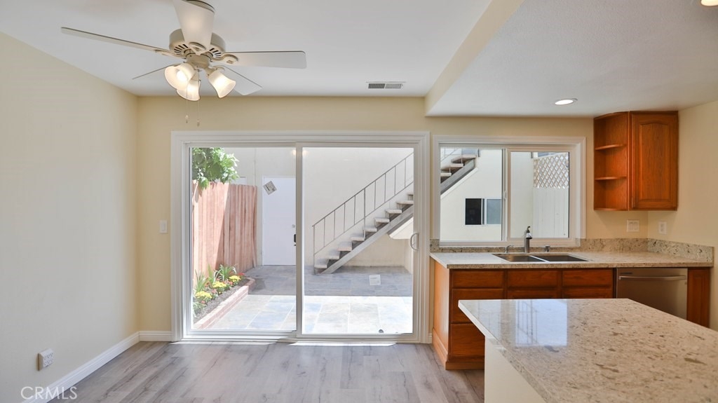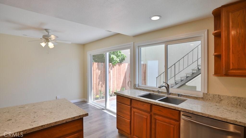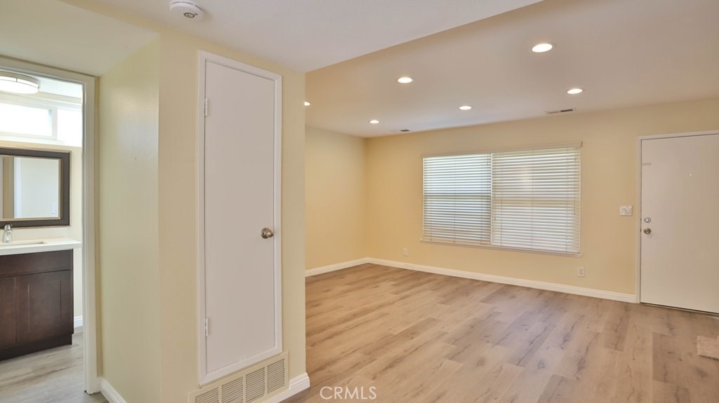 It is a great opportunity to live in a beautiful, freshly remodeled, End Unit, Townhouse, just like a Model House, in one of the most quiet and nicest community, CHATEAU BLANC, in Fountain Valley.The house offers 3 bedrooms & 2.5 baths in main Unit and back unit, above the garage is the Studio, accessed by a private staircase, with a full bathroom and kitchenette with new sink, cabinet and new mirror, which is easily rented out with Extra Income. This house has been freshly remodeled with complete new Paint and newly installed Vinyl Laminate Flooring throughout. New Sinks, Cabinets, mirrors, toilet tanks in most of bathrooms. Kitchen has been upgraded with Quartz Counter top, brand new Stainless Steel Stove and Dishwasher and a new window over looking the Garden Patio. Newer Ceiling Fans and Sliding Door in a cozy Dinning Room. Newer blinds throughout. Recessed lights in Living Room. Especially Master Bedroom and Living Room have a nice view, over looking the Park and Green Belt. Low HOA. Detached 2 Car-Garage, accessed from Patio, with freshly new Paint and nice and clean looking Garage Flooring. There are a lot of upgrades in this house that could be listed all out. Community offers Pools, Tennis Court, Basketball Court and Clubhouse. Across the street is the Shopping Plaza with multi shops. Close to Shopping, Restaurants, schools, Mile Square Park, Golf Courses, Hospital and 405 Freeway. You must come to check out this rare opportunity. Hurry!!! It won't last long.
