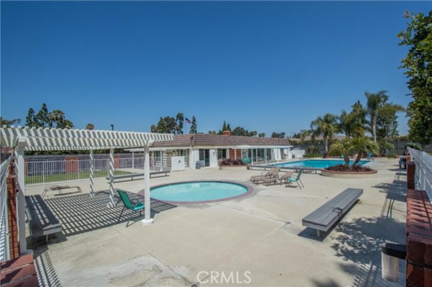 Ready-to-Move-In! Beautiful townhome with a 10 minute drive to the beach. This gorgeous home in the highly sought after community of Chateau Blanc offers 2 bedrooms and 1.5 bathrooms in the main unit and a huge 400 square foot studio above the garage adds a great rental income opportunity complete with full bath and kitchenette. Enter into a warm & cozy town home recently renovated with dual pane windows and fresh paint throughout. Living room offers plenty of space with plush neutral tone carpet and views into the courtyard. The kitchen is nicely sized with plenty of cabinet space, tile counter tops, large eating area and access to the back patio. The main house bedrooms are nicely sized with walk in closets. Both bathrooms are completely remodeled with new vanties, flooring and freshly painted. The studio above the garage has been remodeled with new laminate flooring, kitchenette cabinets and dual pane windows. Studio bathroom features remodeled shower with glass shower doors, new vanity and light fixture. Front door leads to outdoor greenbelt steps away from the pool and other convenient amenities that includes a play area for kids, basketball and tennis courts within the community, walking to distance to local shops & restaurants! Come live to enjoy this sought after community in Fountain Valley!