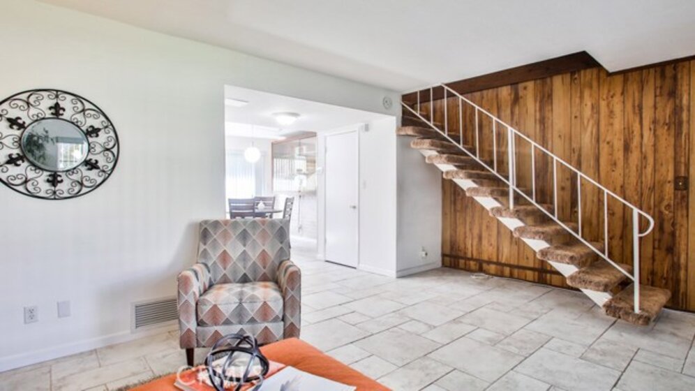 End unit 4 bedroom 2.5 bath town home with the 4th bedroom/bonus room over the garage. Bonus room is approximately 400 square feet, included in total of 1720 feet, and has a full bathroom with a kitchenette and a closet and heat and AC. Lovely tile floors downstairs in the town house. Spacious living room and dining areas. Kitchen has stainless appliances. New carpet upstairs and new paint. Bathrooms have been updated, clean as a whistle. Spacious master suite fits a king size bed. Murphy bed in secondary bedroom can stay. Private patio between house and two car detached garage. Numbered parking in the community is open parking for guests and residents. Laundry in the garage. Bonus room is over the garage and can be a rental unit. Refrigerator, washer and dryer included.