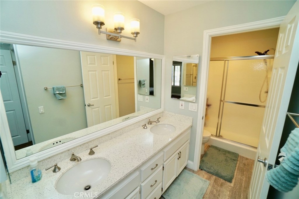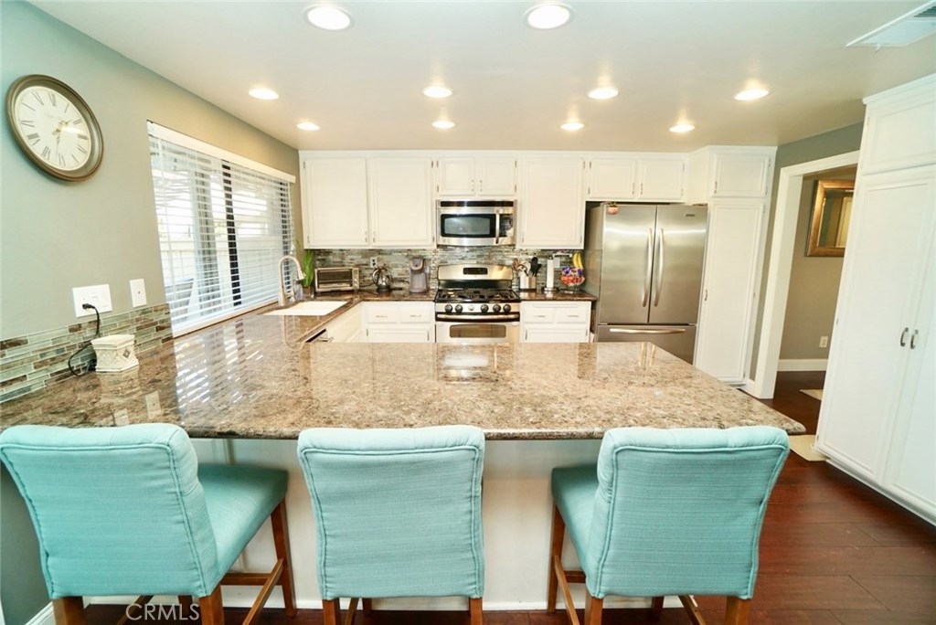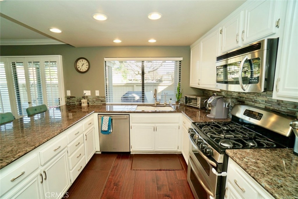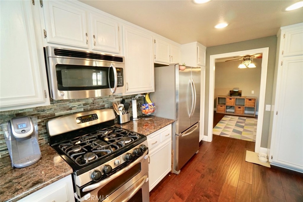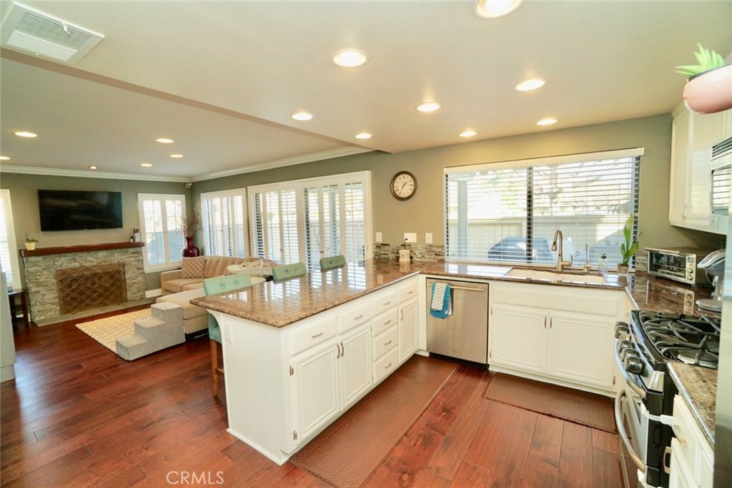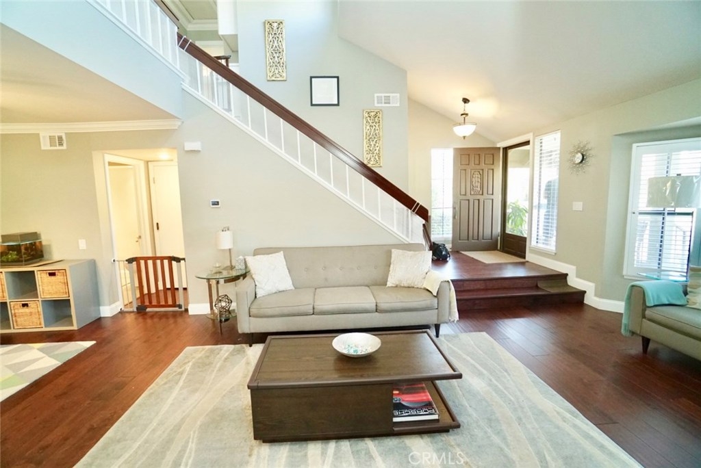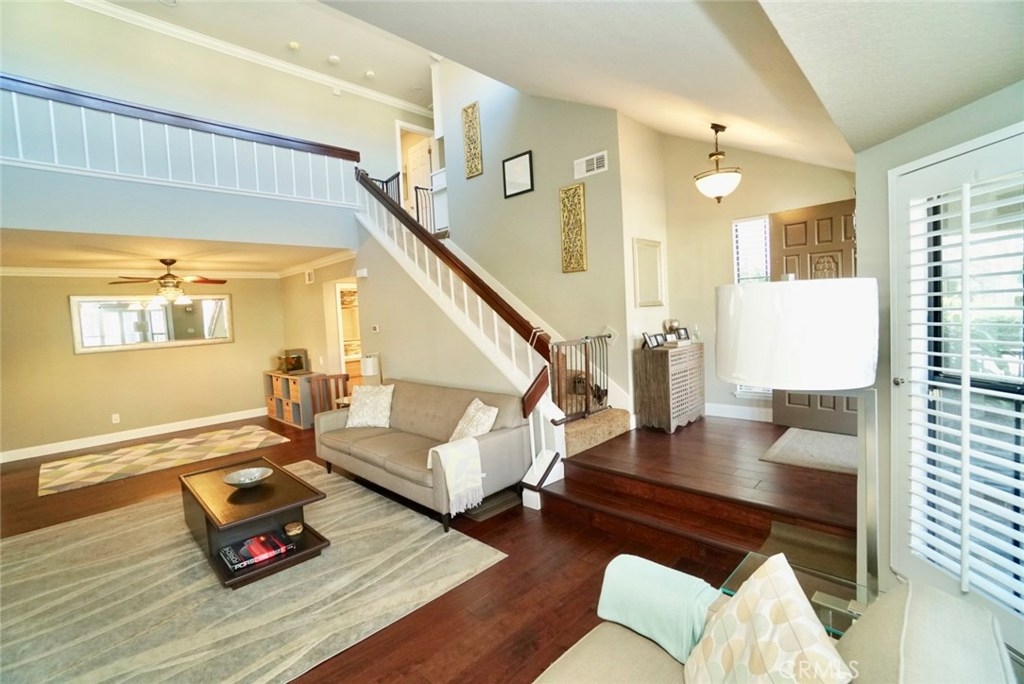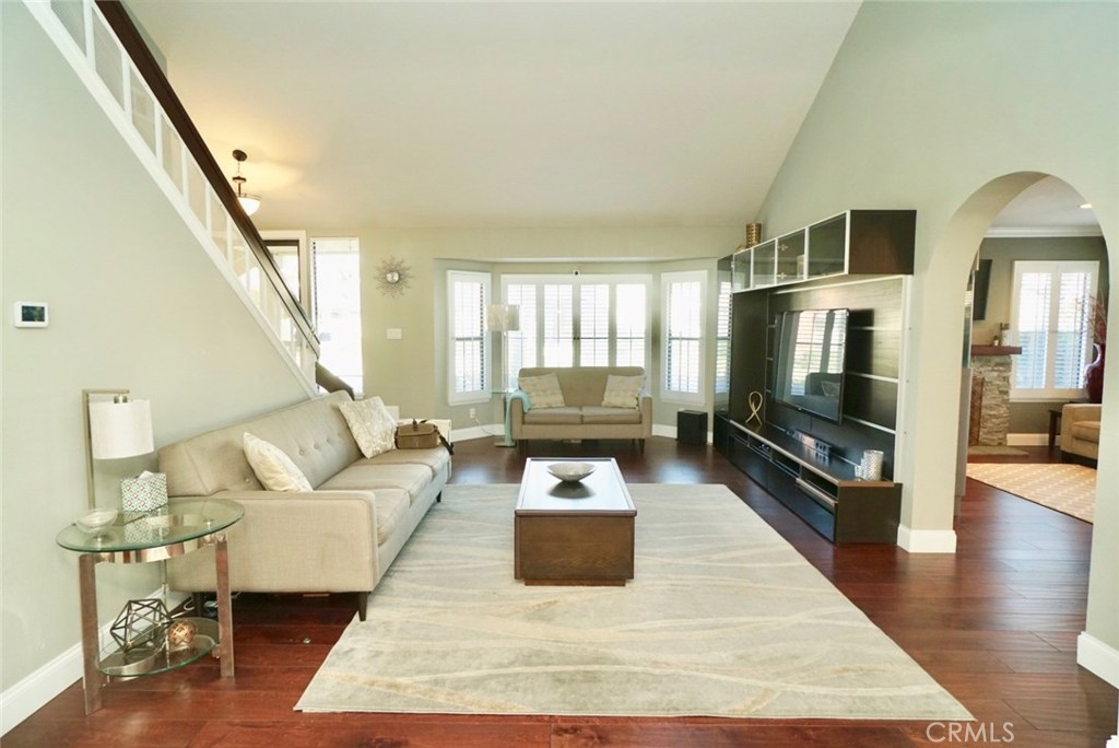 MUST SEE!!! Rare opportunity for the largest floor plan in this safe and established Concord Place neighborhood. Beautiful modern move-in ready turnkey home centrally located and steps to the pool. Come see the attention to detail- from the hardwood floors, high vaulted ceiling, crown molding, recessed lighting, plantation shutters. Bright and airy formal living room connects to the dining area. The kitchen features granite countertops and stainless steel appliances- not to mention a soft water system! The kitchen opens to the family room with a stone fireplace and looks out to the patio. The garage has wall to wall cabinets plus over head racks for plenty of storage. The large master bedroom suite has high vaulted ceilings, whole closet wall, and dual sinks. All 3 bedrooms are equipped with ceiling fans, plantation shutters, and dual pane windows. The list goes on and on!!! Close FWY access and about 4-5 miles away from the beach! Come take a look to see if this house can become your home!