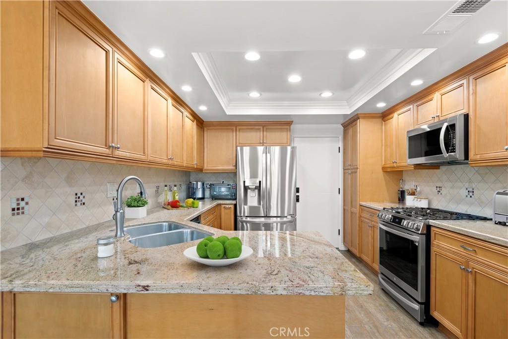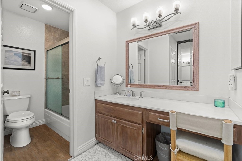 Updated Fantastic Fountain Valley W/405 Gorgeous Townhome in the desirable Concord Place Community that has it all! The unit you have been waiting for! 2 Bedrooms, 2.5 Bathrooms, 1458 sqft 2 Story home with direct garage access and A/C built in 1985. Natural light pours into the living area with vaulted open beam ceilings and south facing windows. The living room has a fireplace with updated tasteful tile and mantel. The high ceilings with recessed lights give you a great airy spacious feel. Contemporary wood look tile flooring in most areas. The adjacent dining room has french doors with side lights for more natural light. The kitchen has beautiful finished light wood cabinets with tasteful tile backsplashes, granite counters, breakfast bar, and updated appliances. At the formal entryway, there is a half-moon window above the door and a side window. You will appreciate the 2 en suite bathroom updates! The very pleasant low maintenance backyard is an outdoor treat. Low maintenance patio cover, brick patio, and artificial turf. Save your precious dollars and time, the money has already been invested here: updated kitchen cabinets, granite counters, tile wood look flooring, recessed lighting, painting, thousands spent on new appliances-LG counter depth refrigerator, LG range and microwave, Kenmore dishwasher, ceiling light/fans, shutters, $13,000 custom Murphy Bed and desk system, newer water heater, updated AC and furnace. Disappearing front door screen and more…