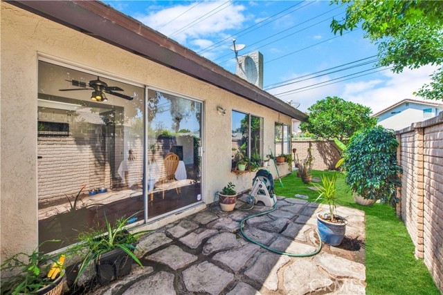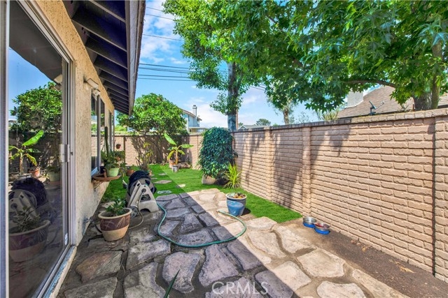 Popular Single Story End Unit Floorplan Located in the Highly Sought-After Emerald Glen Community of Fountain Valley. This 3 Bedroom, 2 Bath, 1244 Square Foot Home with Soaring Ceilings and Newer Central Air Conditioning needs a bit of TLC but is an Outstanding Opportunity to Own a PUD Townhome that is Designated a Single Family Home -- Only attached on One Wall. It Boasts a Wrap-Around Patio with Gate Access to a Lush Greenbelt with Shade Trees, a Second Atrium Patio off the Primary Suite, and is Only Steps to the Beautiful Resort-Style Association Pool, Spa, and Clubhouse. The Open Concept Floorplan Features a Spacious Living Room and Dining Room with Vaulted Ceiling, Wood Laminate Flooring, Fireplace, Ceiling Fan, and Lots of Windows for an Abundance of Natural Light. The Kitchen has Brand New White Cabinet Doors, White Tile Countertops, and Tile Flooring. The Primary Suite Showcases a Soaring Vaulted Ceiling, Slider to Private Atrium Patio, 2 Closets, an Ensuite Bathroom with Dual Sinks and a Walk-In Shower. Direct Access to the 2 Car Garage with Tons of Storage Space, Washer and Dryer Hook-Ups, and a Full-Size Driveway. This Home Also Features an Abundance of Stand-Up Attic Storage Space. This is a Wonderful Community with Beautiful Grounds, Walking Paths, and Lots of Guest Parking. Located Close to Mile Square Park, Excellent Schools, Shopping, Restaurants, Easy Freeway Access, and Only a Short Drive to the Beach!