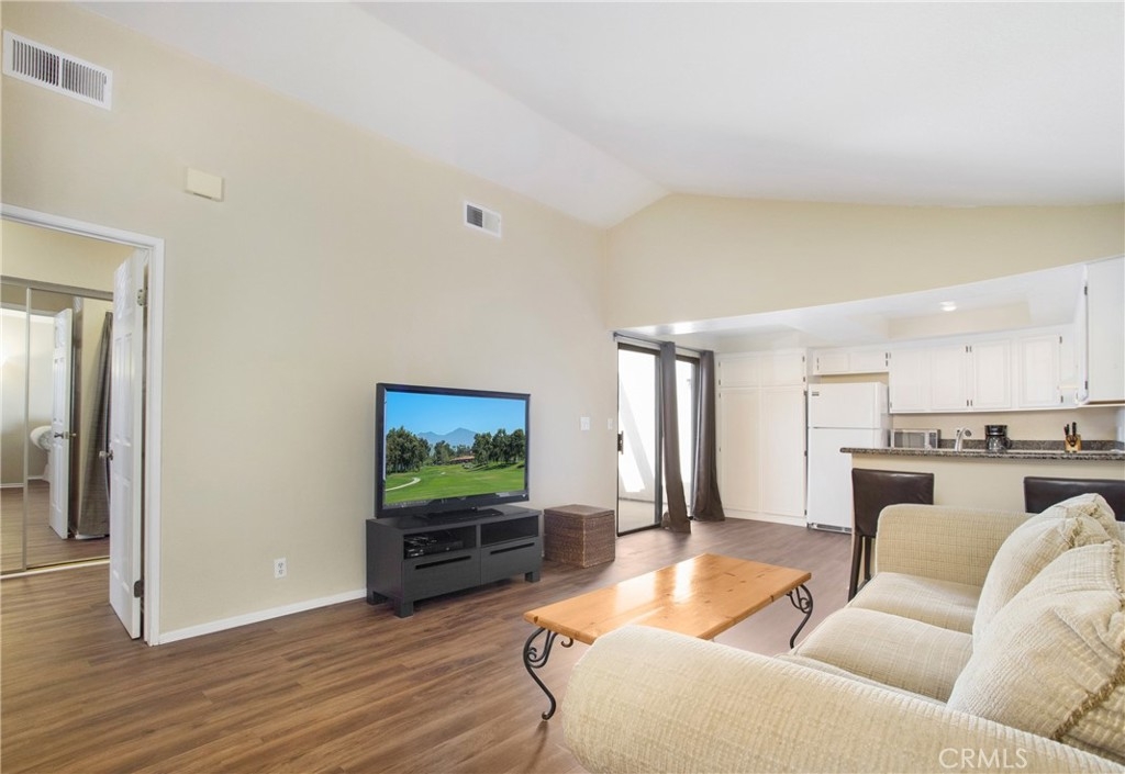 Welcome to this charming and well-kept 1 bedroom home in beautiful Fountain Crest. This exquisite upstairs home has smooth vaulted ceilings, newer flooring throughout, central air conditioning included (AC), spacious rooms and a very deep one car garage with lots of storage space. There are two private patios and lots of windows throughout providing plenty of sunlight. Open concept kitchen with oak cabinets and granite countertops. Centrally located off the 405, Mile Square Park, shopping, and the library. This home is in pristine condition to move right in! Resort style community pool and spa.