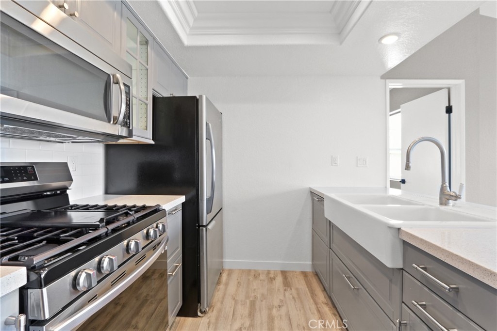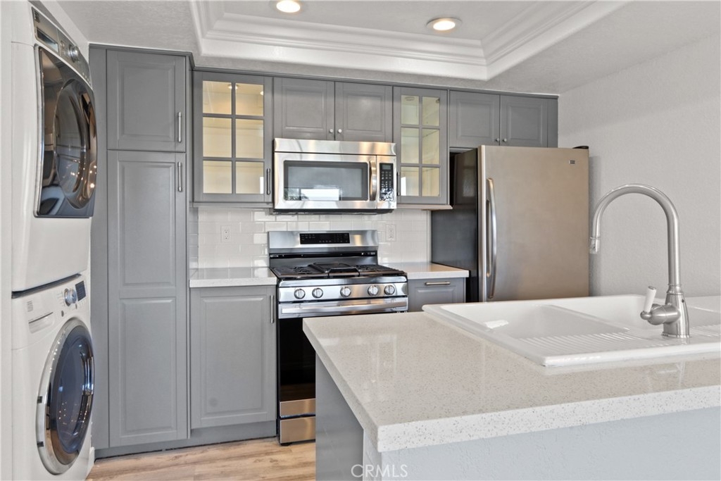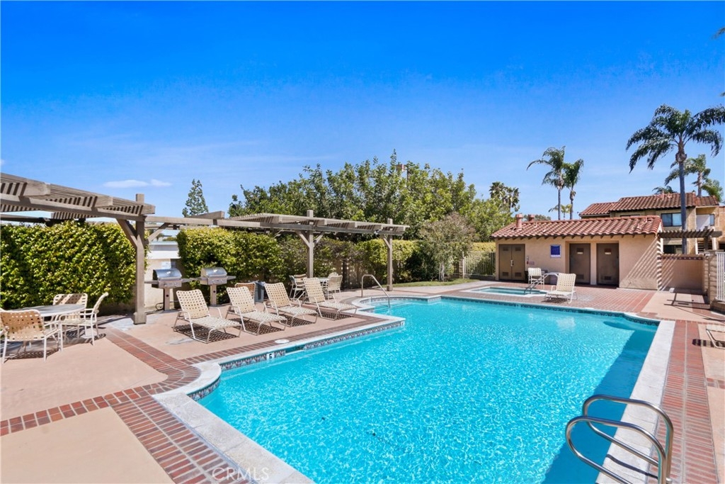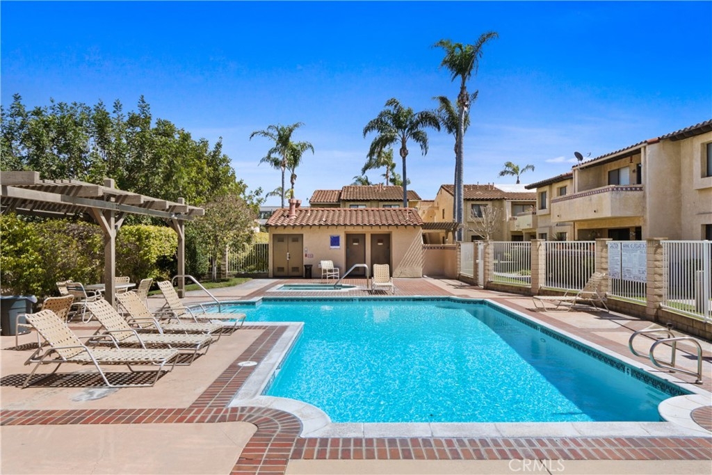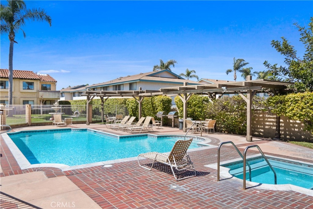 Looking for a picture-perfect condo not far from the beach? Ideally located, this Fountain Valley home might be just the bright and comfortable abode you're looking for. Natural light flows in through multiple windows highlighting the hardwood-style floors and newly remodeled open floorplan. You'll delight in dual master bedrooms with ensuites and ample closet space. Fresh grey cabinetry, countertops, and a breakfast bar feature in the kitchen while a sliding glass door opens onto the patio from the dining area. Your private patio is ideal for relaxing with a morning coffee before heading to the community pool. Forget the hassle of street parking with your one-car garage. Enjoy the luxury of doing laundry in the comfort of your own home. Nestled at the rear of the complex, enjoy added privacy and tranquility, while still benefiting from easy access to the 405 freeway and top-rated schools. With the allure of beachside living and the comfort of modern amenities, this is more than just a home—it's a lifestyle waiting to be embraced.