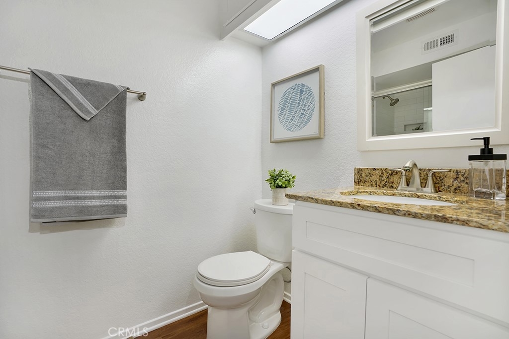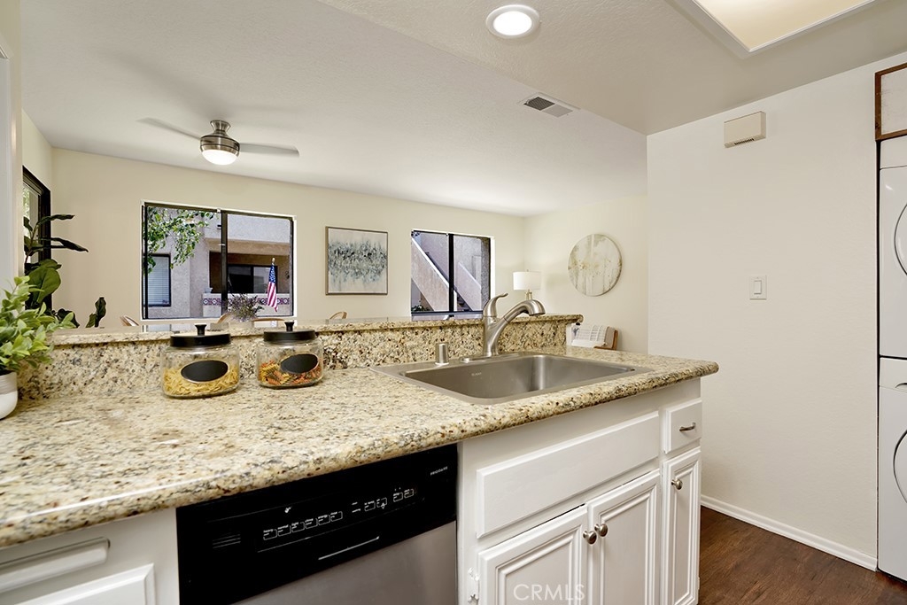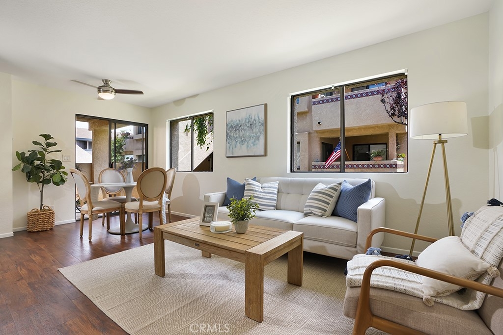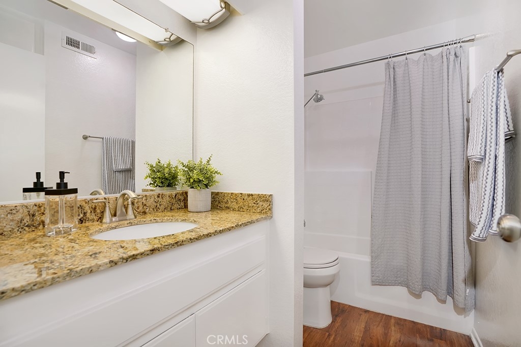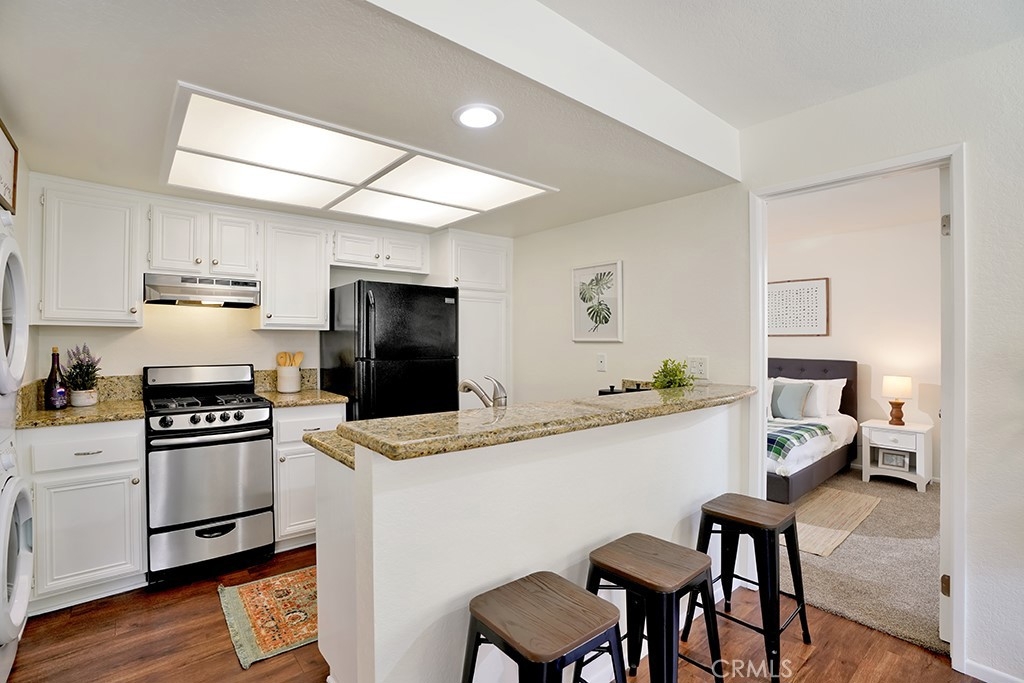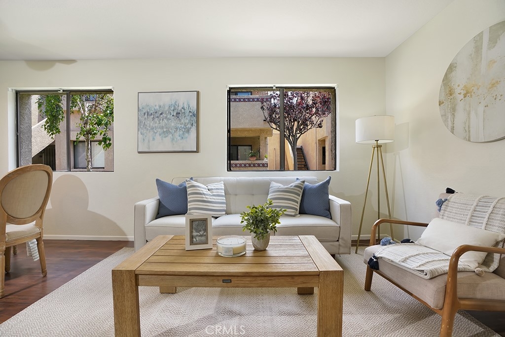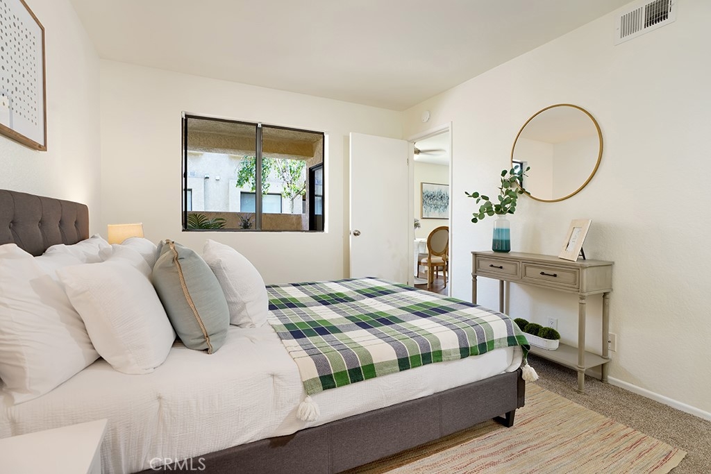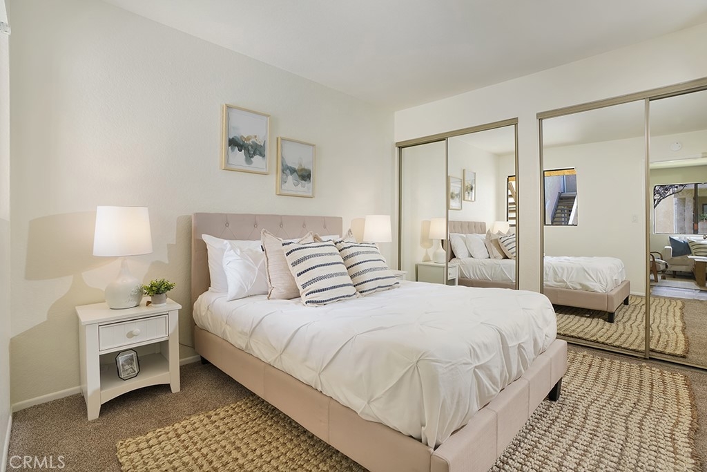 Looking for a picture-perfect condo not far from the beach? Ideally-located, this Fountain Valley home might be just the bright and comfortable abode you’re looking for. Natural light flows in through multiple windows highlighting the hardwood-style floors and fresh paint in the open floorplan. Bright white cabinetry, granite countertops, and a breakfast bar feature in the kitchen while a sliding glass door opens out to the patio from the dining area. You’ll delight in dual master bedrooms with new carpet and ensuites with one having a walk-in closet. Your private patio is ideal for relaxing with a morning coffee before heading to the community pool. Forget the hassle of street parking with your oversized two-car garage and appreciate the luxury of doing laundry in the comfort of your own home. With more privacy being set at the back of the complex away from Brookhurst St, easy access to the 405 freeway, and within an excellent school district, you’ll love calling this residence your very own. Come take advantage of this amazing investment with low HOA fees!