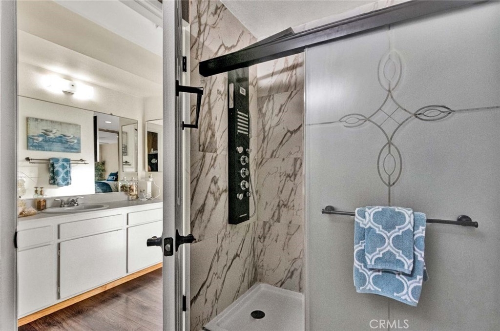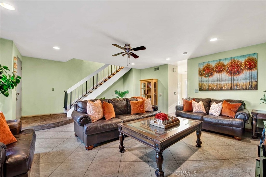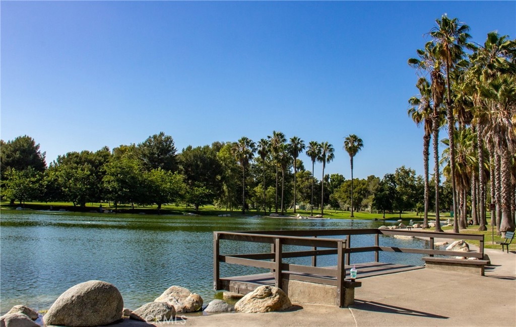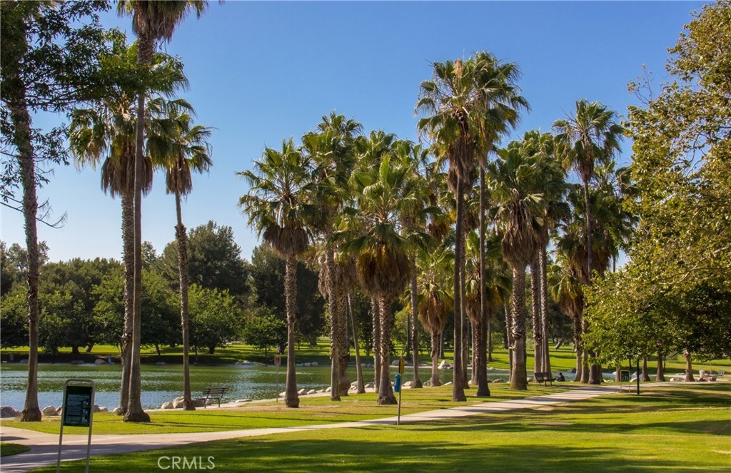 Nestled in the Gated Community of Fountain Park, Directly Across the Street from Mile Square Park with Golf, Lake, Sports Park, and Beautiful Walking/Jogging Paths is this Lovely 3 Bedroom, 2 Bath Townhome (PUD - Zoned as a Single Family Residence) with 1388 Square Feet of Living Space, Plus a Large Tranquil Patio with Direct Access to an Oversized 2 Car Garage with Tons of Built-In Storage Cabinets. This Superb Home Features: Newer Central A/C, Newer Water Heater, Dual Pane Windows and Sliders, New Garage Door, Tile Flooring Downstairs, Wood Laminate Flooring Upstairs, Extensive Recessed Lighting, Smooth Ceilings, Ceiling Fans, and Upgraded Kitchen and Bathrooms. There is One Full Bathroom Upstairs with Two Vanities/Sinks - Jack & Jill Style with Door to Primary Suite and Door to Hall. It has a Newer Vanity and Walk-In Shower with Newer Surround and Clear Glass Enclosure. There used to be only a Half Bath Downstairs but now it is a Full Bathroom with Jacuzzi Soaking Tub, Separate Shower, and Floor-to-Ceiling Tile Walls (Inside Laundry Room was used to do Expansion and Laundry is now in Garage). It Boasts a Spacious Living Room with Fireplace and Room for Formal Dining Area. The Upgraded Sunlit Kitchen Features Granite Countertops & Backsplash, Cherry-Colored Cabinetry with 2 Lazy Susans, Stainless Sink with View of Patio, Stainless Appliances, and "Eat-In" Dining Area with Slider that Opens to the Patio - Perfect for bringing in your Barbecue Creations. The Inviting Patio Provides Wonderful Outdoor Living, Relaxing, and Entertaining Space with Concrete Deck and Manicured Wrap-Around Planters that Include: an Avocado Tree, Drumstick (Moringa) Tree, Guava, Papaya, Aloe, Lime, and Holy Basil. This Popular Complex is FHA & VA Approved. It Includes Lush Grounds, Walking Paths, Pool, Spa & Clubhouse with Kitchen. Close to Top-Ranked Schools (Paine, McGarvin, LaQuinta - Great Schools Ratings of 8, 9 & 9, Respectively). Short Drive to Beach, Shopping and Restaurants. Easy Commute if you work in LA.