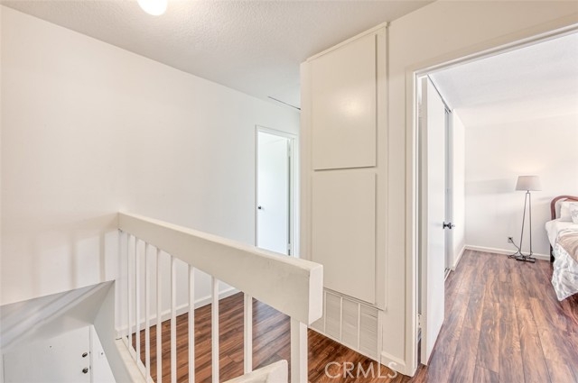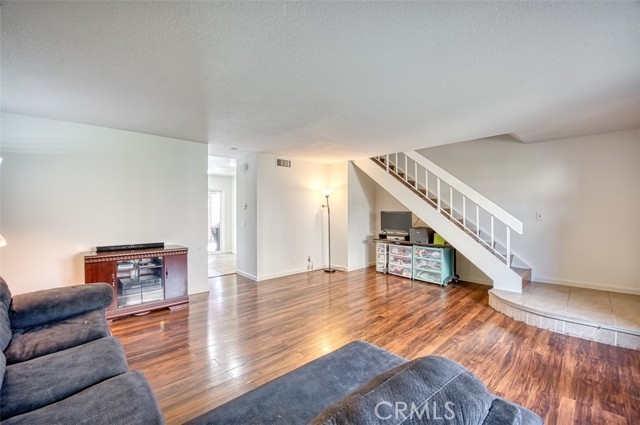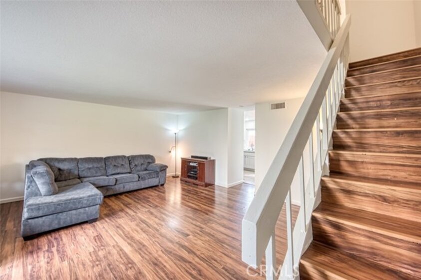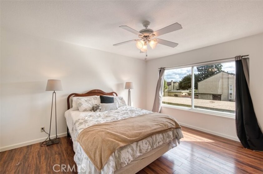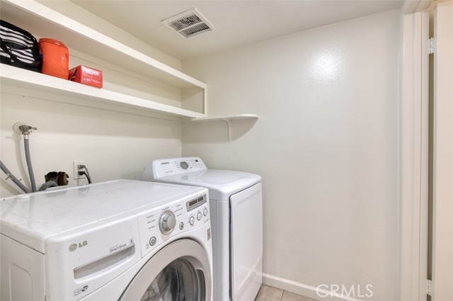 JUST LISTED IN THE GATED COMMUNITY OF FOUNTAIN PARK! This 3 bedroom, 1.5 bath two-level home offers nearly 1,400 sqft of interior living space and a quiet, inside-tract location. Features include dual-pane windows and sliders throughout, tile & laminate flooring, inside laundry with included washer/dryer, downstairs powder room for guests, and a cozy gas fireplace in the spacious main living area. Also includes an updated kitchen with granite countertops & backsplash, stainless steel appliances, recessed lighting, white shaker cabinetry and convenient nook for a small kitchen table. Just off of the kitchen is a private covered outdoor patio - perfect for parties & friends - and direct access to the large 2-car garage with roll-up garage door. Upstairs are three big bedrooms, the master at the back with mirrored wardrobe doors, overhead cooling fan, walk-in closet, and en-suite granite countertop vanity with shaker style cabinetry. The upstairs bathroom has been tastefully updated to match the master bedroom sink area and includes a second vanity, shower over tub and commode. Finishing the upstairs is a linen/storage closet at the landing and two additional large bedrooms. The Fountain Park community offers lots of greenbelts and mature landscaping, along with a community pool and clubhouse - all right across the street from the famous Mile Square Regional Park!