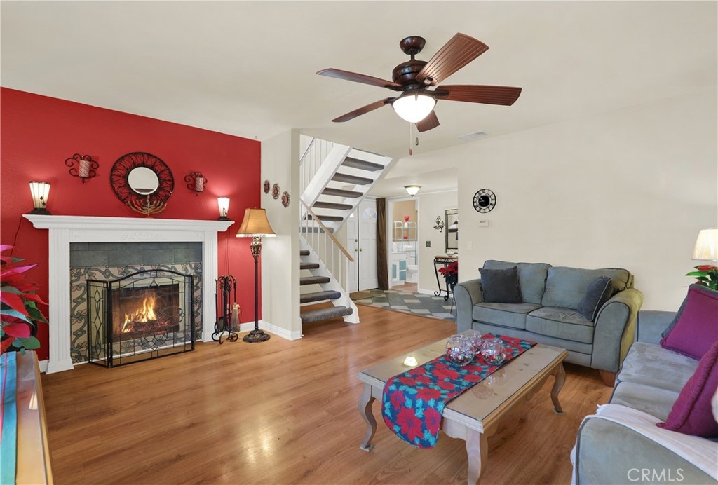 Lovely well-kept townhouse in a desirable location in a gated community in Fountain Valley located across the street is the Mile Square Regional Park, where one can enjoy nature, like biking/walking trails, 2 golf courses, soccer fields, baseball/softball, baseball diamonds, archery and a wide space picnic areas. An end unit with no unit above or below, 2 story with 3 bedrooms and 1.5 bathrooms, with 1402 square feet open living space with fireplace with 2 car detached garage. New paint and carpet throughout the second floor including the stairs, wood flooring throughout the first floor and laminated tiles in the entry, newly installed double paned insulated windows with screens include a sliding door at the dining room out to the patio. New dishwasher and new garbage disposal on tiled counter in the kitchen. New neutral color laminated tiles in the dining and kitchen floor areas. Centralized heating and cooling system, Copper Plumbing, partial. Brick walls and covered shed at the private patio perfect for entertaining and enjoy the Southern California sunshine. Close to shopping, dining and 405 freeway with great school district. The Fountain Park Community offers, a community pool, clubhouse, BBQ area, and RV/Boat parking. Make this dream townhouse yours!