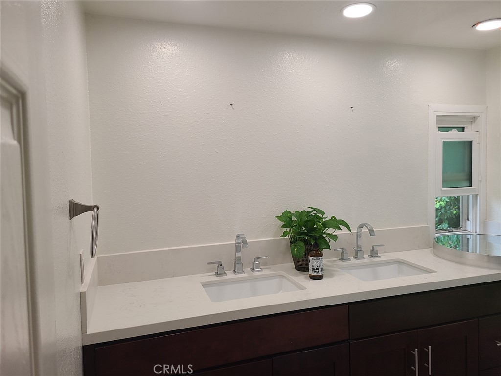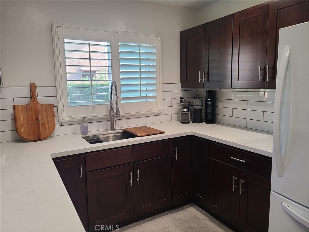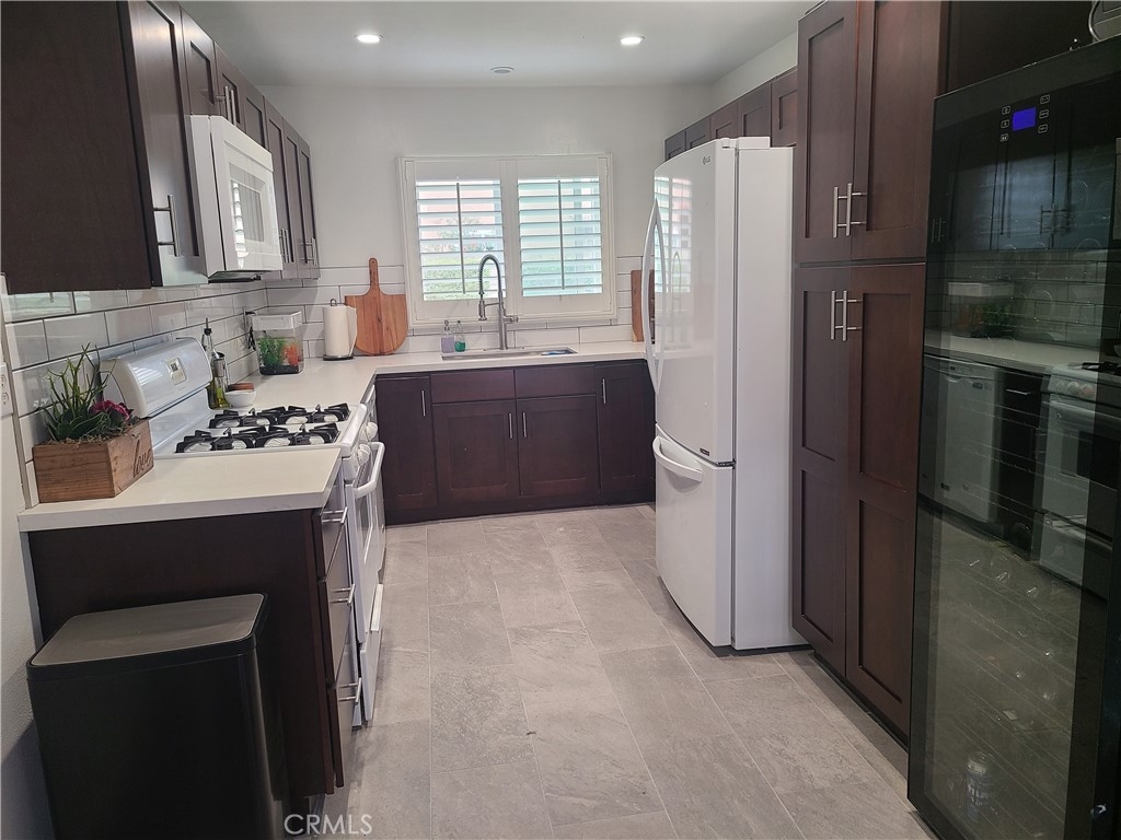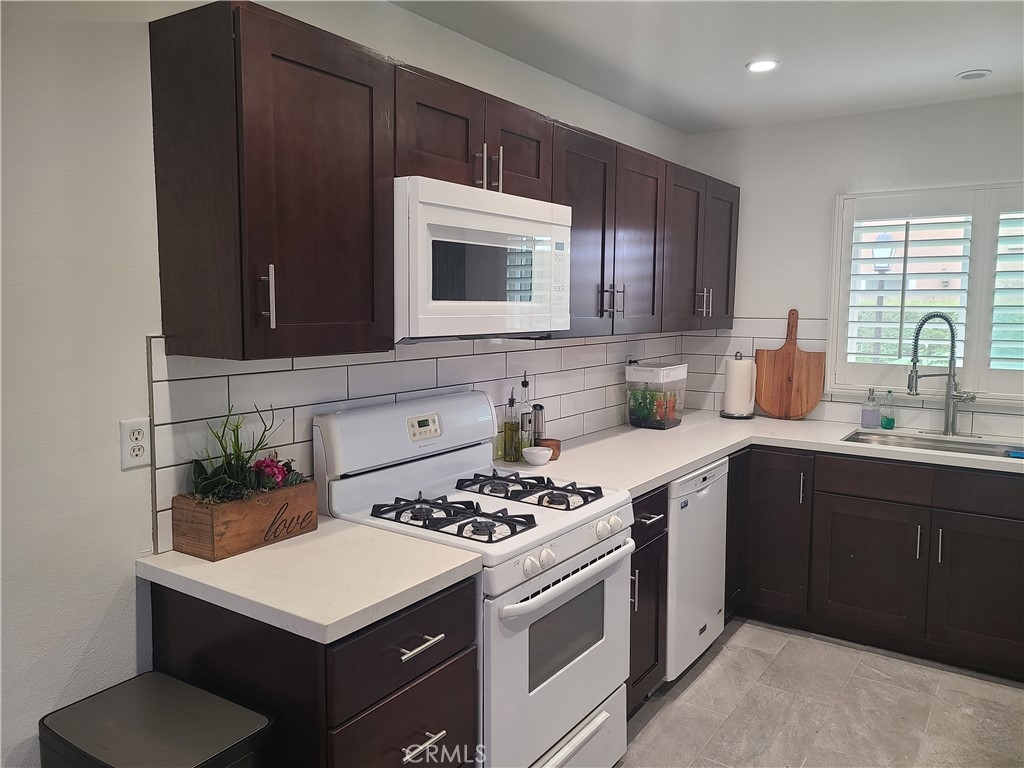 Professional photos coming tomorrow... Welcome home! This sparkling clean home has it all for you... Fresh Dunn Edwards paint through out. Scraped ceilings and recessed lighting. Kitchen has new Quartz counters, deep stainless undermount sink, commercial spray faucet, garbage disposal, new microwave over the gas stove. Dual pane windows and plantation shutters through out. Powder bath downstairs with full size washer & dryer (included!). Upstairs are 3 big bedrooms. Newer HVAC system with super cold AC. Bathroom with new dual undermount sinks, new faucets, new mirrors, new quartz counters, shower over new bath tub. New wall tile. New floor tile. New lights, new toilets. Step outside to your private patio and direct access to your two car garage with garage door opener.
