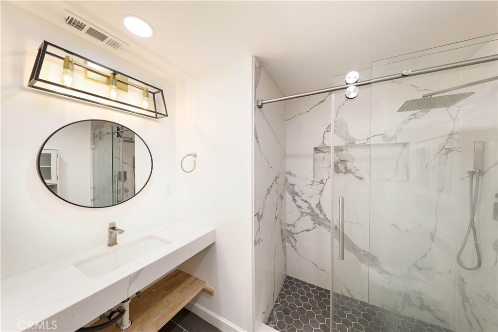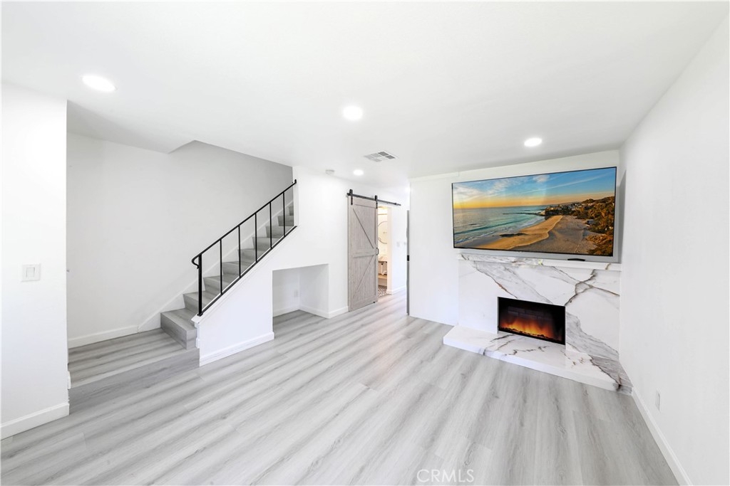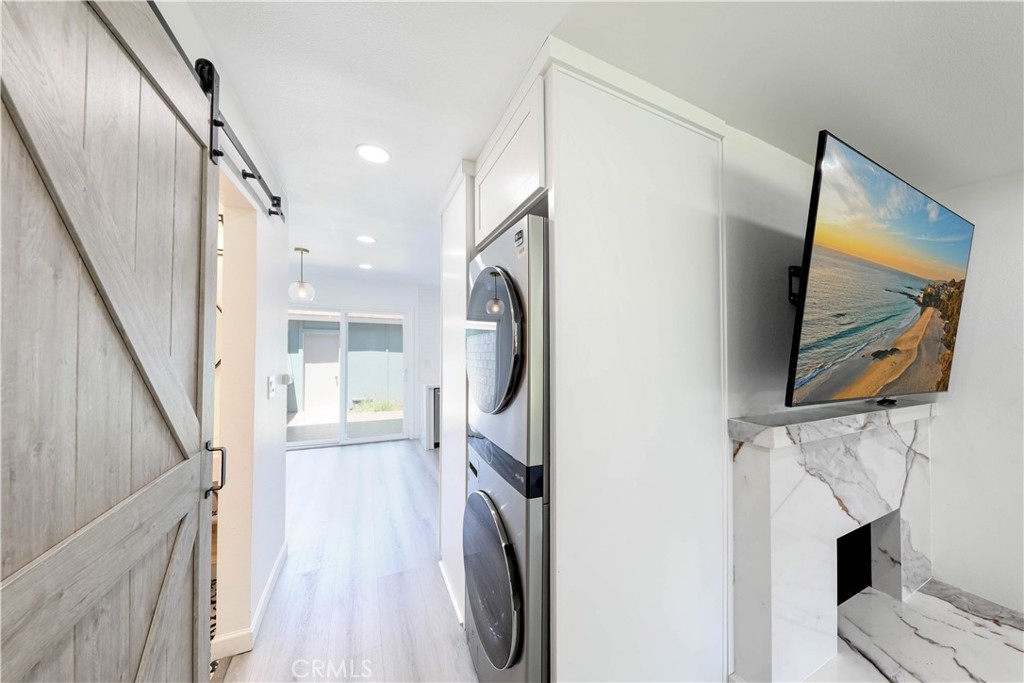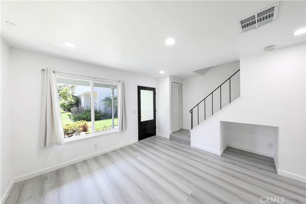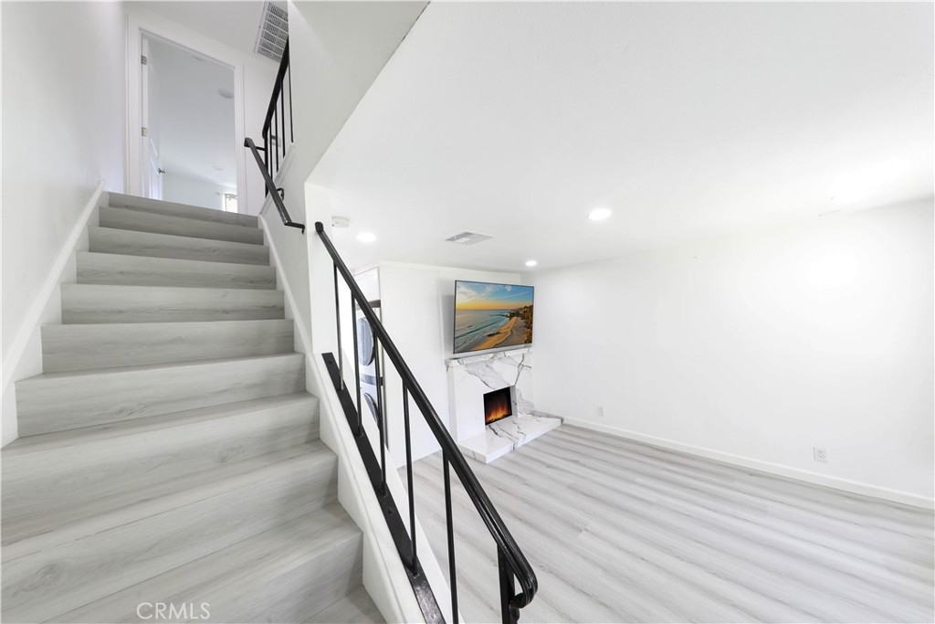 Welcome to Harbor Valley, a tranquil oasis nestled in Fountain Valley, just a stone's throw away from the beautiful Mile Square Park. This exceptional 2-bedroom, 1.5-bathroom townhome exudes elegance and style, having undergone a complete renovation. As you step inside, you'll find sleek vinyl flooring that pairs perfectly with the freshly painted walls, creating a bright and inviting atmosphere. The living room, bathed in natural light from a large front window, offers views of the verdant greenbelt and features a marble gas fireplace – an ideal setting for cozy evenings. A new air conditioning and heating system have been installed, ensuring year-round comfort in every room of the home. The stylish kitchen is a culinary's delight, fitted with brand new stainless steel appliances, including a range hood and refrigerator. Adjoining the kitchen is the dining area, providing an open space perfect for entertaining. Both bathrooms are fully modernized with quartz countertops, new fixtures, and a shared upstairs bath that offers a walk-in shower featuring a rain shower and wand enclosed by sliding glass doors. The spacious master bedroom features his/her mirrored wardrobes, while the secondary bedroom offers a walk-in closet complete with organizers. Each space has been thoughtfully designed to provide maximum comfort and utility. The home's exterior spaces are equally impressive. The front patio and backyard offer the perfect blend of privacy and openness. The backyard, accessed from the dining area, leads directly to a private 2-car garage, adding to the convenience. Every detail in this home has been carefully curated, from new dual pane windows for energy efficiency to a stylish new front door, elevating the aesthetic appeal of the property. As part of the Harbor Valley association, residents have access to a range of amenities such as a pool, spa, tennis courts, children's playground, clubhouse, and expansive greenbelts that add a touch of nature to this charming community. This meticulously renovated townhome offers a unique blend of style, comfort, and convenience, including new climate control systems, making it an enviable living destination in Fountain Valley. Your dream home awaits!