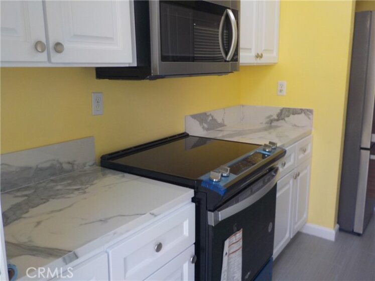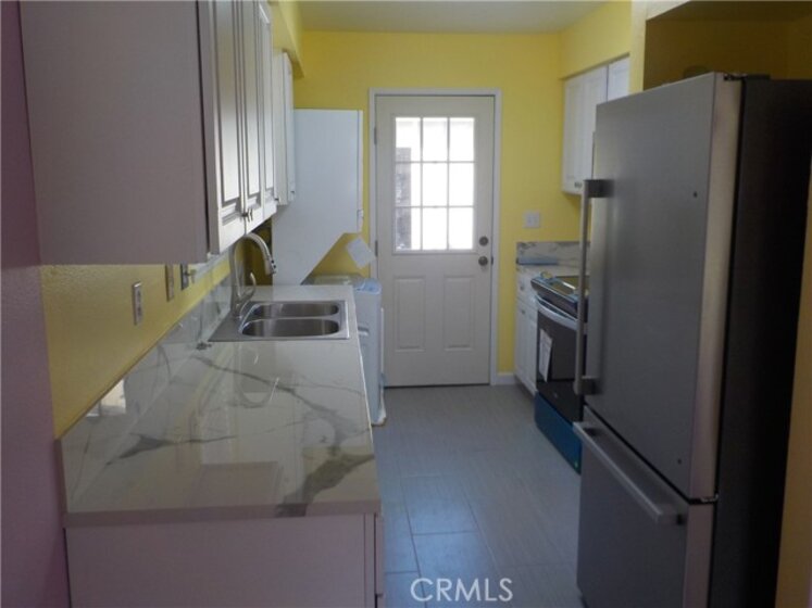 This condo was gutted to the wall and completely refurbished. One story, ground floor, one common wall. New paint, laminate and tile flooring, all new bath, all new kitchen. New stainless steel appliances. New stackable washer/dryer in the unit. New light fixtures, closet doors, window blinds. VERY low condo dues=$195 a month for a very well kept, well run complex. Best of all, a legitimate double garage attached by the patio. Close to everything by Harbor and Edinger. Agent is the owner and has a Ca. RE license
