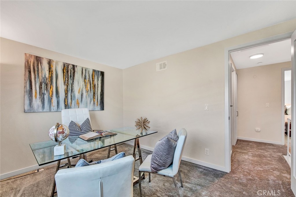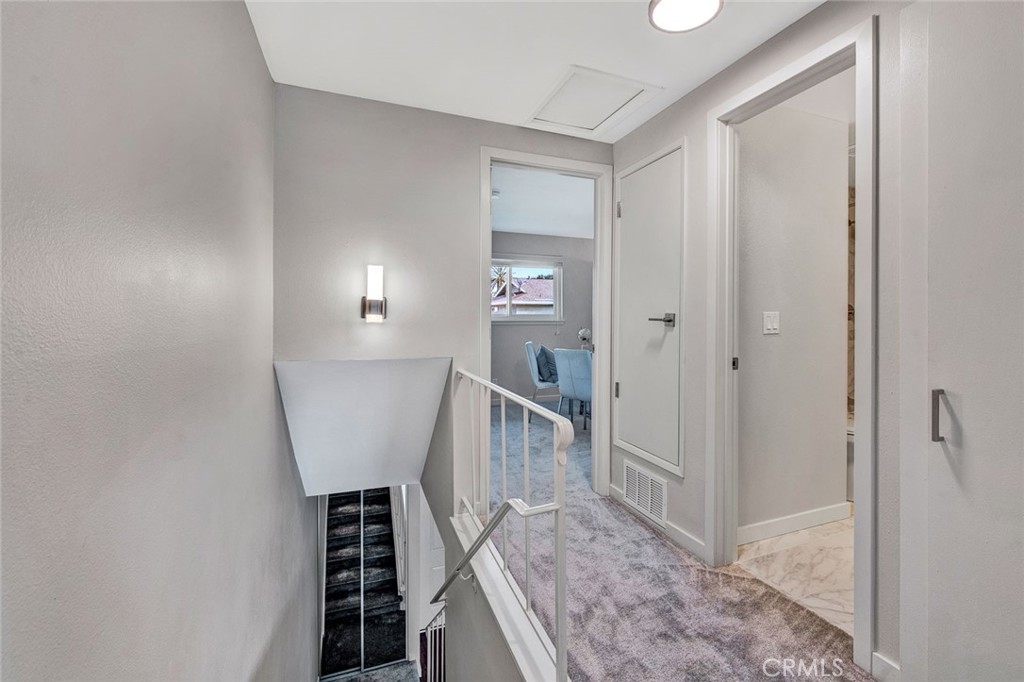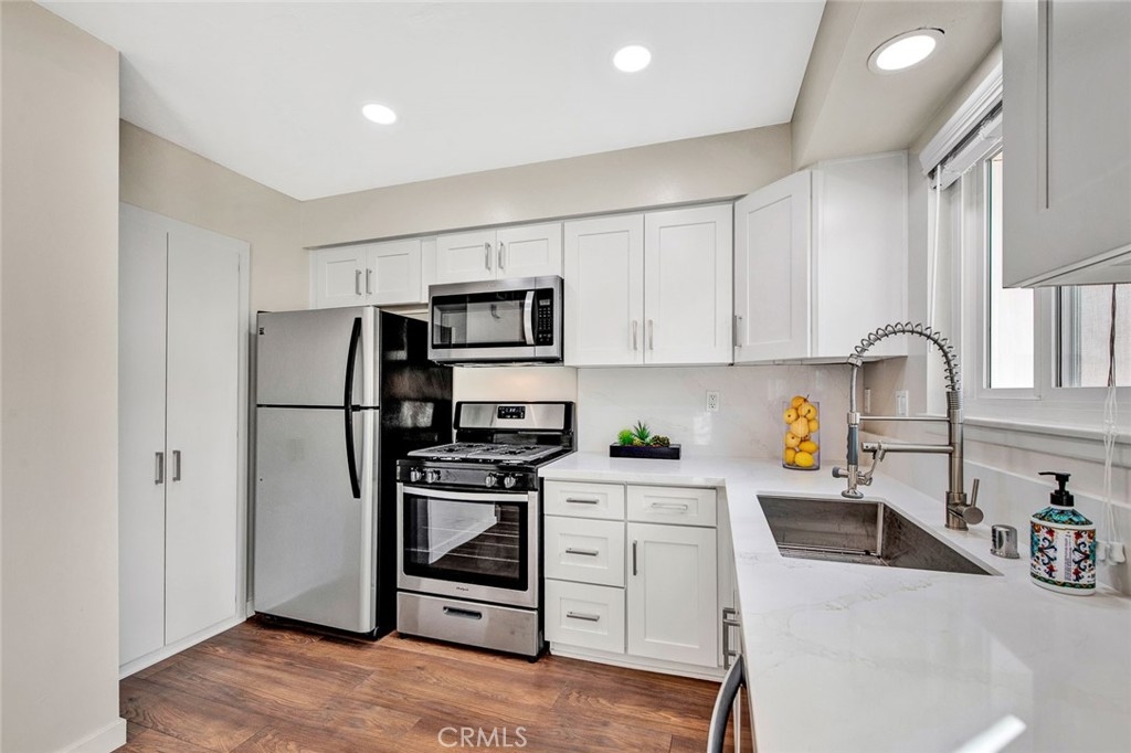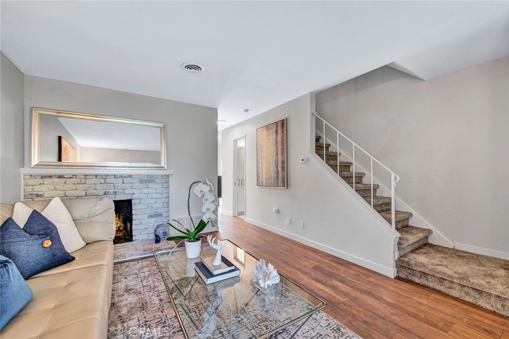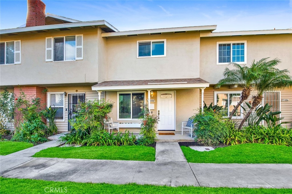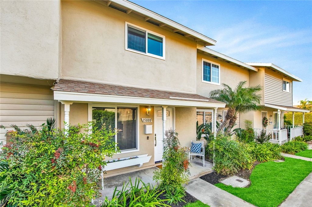 Prepare to be wowed by all this show place has to offer. Such an effort and attention to detail can be seen in everywhere you look. The workmanship is exceptional quality and the contemporary luxurious decor finishes are ideal for a modern aesthetic. The entrance welcomes you with a nicely landscaped front yard and new exterior paint. As you enter through the new steel door with decorative glass and new hardware you will notice the abundance of natural light. Step onto the new beautiful laminate floors that are trendy yet durable. New baseboards too. Relax and enjoy the used brick wood burning cozy fireplace. Freshly painted interior with a color choice that will go with anything. All new dual paned windows and slider. The impressive kitchen is appointed with quartz countertops, a single stainless sink with a beautiful high end kitchen faucet. The kitchen boasts modern shaker cabinetry soft closing drawers and doors, a lazy Susan and a deep pantry. Kenmore stainless refrigerator, Whirlpool dishwasher, stove and microwave. All of this and a stunning quartz countertop and backsplash. Brushed nickel hardware and pulls throughout. All new light fixtures and outlet covers. Tiled laundry area that will accommodate a full-size washer and dryer enclosed with shutter doors. Private enclosed patio off the kitchen where you will be seamlessly led into an outdoor living space for entertaining family and friends. One side of the wood fence is all new. The half bath downstairs has a new toilet, vanity, light fixtures and faucet. New carpeting upstairs. All new window coverings. The spacious primary bedroom has a ceiling fan with remote and new mirrored slider wardrobe doors. The gorgeous shower in the upstairs bathroom is tastefully decorated with stone and tile finishes in neutral tones. The new vanity has a marble countertop with self-closing drawers and dovetail finishes. The secondary bedroom has a walk-in closet. There is a linen closet and downstairs coat closet. All this and a two-car oversized detached garage which has been newly painted and there are shelves for storage. There is also a new garage door and new electrical panel. The location of Harbor Valley provides easy access to the 405 and 22 freeways plus plenty of shopping and dining nearby. HOA dues are low, and the Harbor Valley community offers homeowners many amenities including a clubhouse, a large pool and kiddie pool, playgrounds and lush greenbelts, basketball courts, tennis and volleyball court.