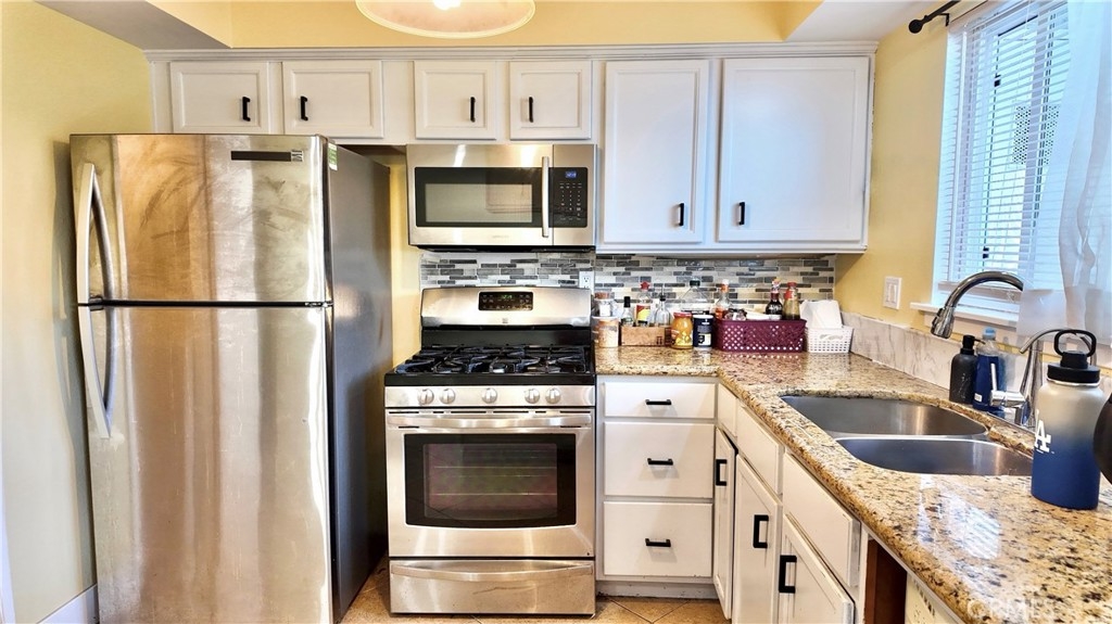 Terrific interior location within the highly desirable Harbor Valley Community, this well-maintained two-story townhome is priced to sell and offers approximately 1,269 sq ft with 3 spacious bedrooms and 2.5 bathrooms. The functional floor plan features a 2-car garage with direct access from the backyard, a spacious living room with a dual-sided fireplace, recessed lighting, and diagonally laid tile flooring. The updated kitchen includes granite slab countertops, custom backsplash, stainless steel appliances, pantry, breakfast counter, and an in-kitchen dining area. The large private backyard offers a concrete patio, garden boxes, a freestanding patio cover, and direct garage access. Upgrades throughout include two-tone interior paint, designer fixtures, recessed lighting, mirrored wardrobe closets, ceiling fans, tile flooring, and laminate flooring in select bedrooms. The large primary bedroom includes a private bathroom, along with two additional well-appointed bedrooms. Additional features include an indoor laundry room with storage cabinets and washer/dryer included, low property taxes, and low HOA dues. Community amenities include a pool and spa, clubhouse, basketball court, and children’s playground. Conveniently located near schools, shopping, dining, parks, and with easy freeway access—this home shows beautifully and is ready for offers.
