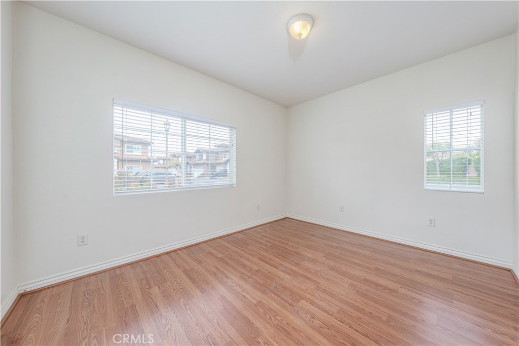 Welcome to the enchanting Liberty at Founders Village, an inviting 55+ community designed for comfort and ease. This charming end unit offers a single-level layout featuring 2 spacious bedrooms and 2 well-appointed bathrooms, with a generous 1,328 square feet of living space all on the first floor—perfect for those seeking the convenience of no stairs. Step inside to discover an open-concept design that boasts soaring high ceilings, filling the space with an abundance of natural light. The cozy living area, complete with a warming fireplace, is perfect for relaxing evenings or intimate gatherings. The kitchen is a chef's delight, offering ample counter space, a convenient serve-over bar, and an adjoining breakfast nook that invites sunny mornings and delightful meals. Retreat to the master bedroom, a serene sanctuary featuring a spacious walk-in closet and stylish double sink vanities, providing both elegance and functionality. Throughout the home, newer wood laminate flooring exudes both warmth and modernity, making it easy to maintain. A thoughtfully designed laundry room adds to the practicality of this lovely home, along with a one-car attached garage for added convenience. The homeowners' association (HOA) provides an array of exceptional amenities, including a sparkling pool for refreshing swims, a heated spa for relaxing soaks, and a welcoming clubhouse for social gatherings. Enjoy the outdoor BBQ area, complete with a cozy fireplace that creates an inviting ambiance perfect for entertaining friends and family under the stars. The HOA fees also cover exterior maintenance, ensuring you can enjoy your home without the hassle of upkeep, including roofing and landscaping. Located in proximity to the scenic Mile Square Park and a beautiful golf course, this community offers a peaceful retreat just a short drive to the picturesque beach. With easy access to the 405 freeway, you’ll find everything you need within reach, making Liberty at Founders Village the perfect place to call home. This is a 55+ community with income restrictions.