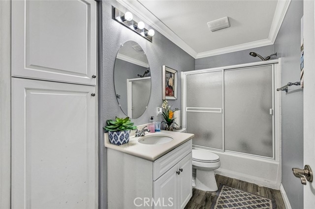 Welcome to your new dream home in the highly desirable 55+ community of Fountain Valley! This single level, recently remodeled home is one of the most sought-after properties in south Orange County. Built in 2004, the home boasts 2 bedrooms and 2 bathrooms with no interior or exterior steps, making it the perfect option for those looking for easy and comfortable living. As you enter the home, you'll be greeted with high ceilings, recessed lighting, and crown molding, creating a warm and inviting atmosphere. The large living room features a fireplace with a crisp white mantel, perfect for cozy nights in. The open-plan layout continues into the dining area, which is open to the chef's dream kitchen complete with a breakfast bar and quartz countertops. The master suite is a true oasis, featuring a large walk-in closet and a spa-like bathroom with dual sinks.