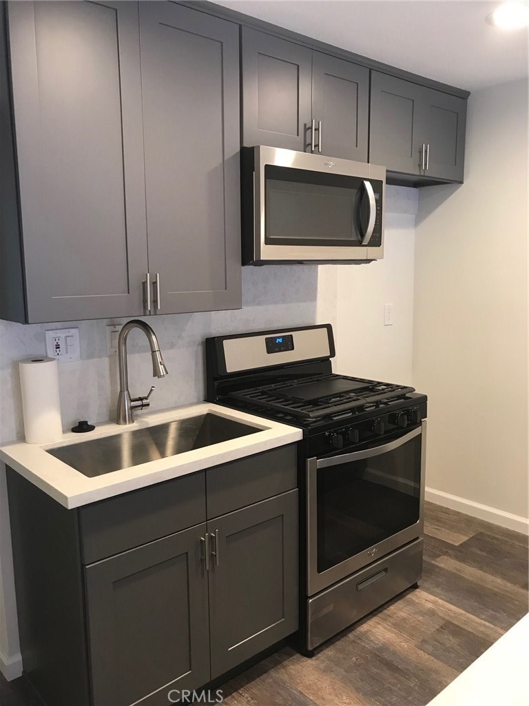 Remodeled & redesigned for the tastefully inclined, this 1 bedroom and 1 bathroom unit is the perfect first time home or investment! New quartz counter tops & vanity, ceiling height cabinets, upgraded premium 'floating' wood finish vinyl flooring, walk-in closet, stackable washer/dryer hook-ups, recessed lighting, stainless appliances, upgraded 5 burner convectional oven. Our redesign makes this significantly superior to comparably sized units in Los Cab. And we haven't even touched on the amenities....Gated Community Spas, Pools, barbecue areas, assigned covered parking in community garage and over 1000+ open parking spaces, a fenced dog park and play ground ($15 / month fee) PLUS a discounted membership to the Los Cab Sport Club's Olympic pool, spas, tennis, racquet & basket ball, aerobics, Zumba, a Cafe, hair salon, masseuse, and so much more. Conveniently located near shopping, restaurants, Mile Square Park, and minutes from the 405 & 55 fwys, this is truly a rare find...Bring your clients, they'll love it!