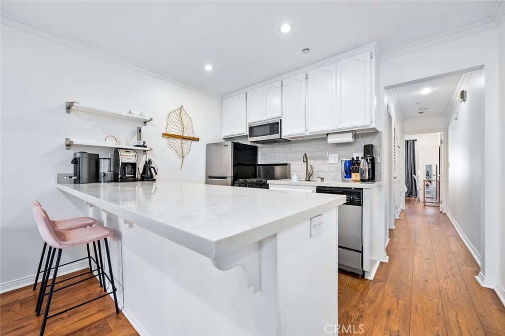 Welcome to your new Los Cab condo! Pride of ownership shines throughout this Fountain Valley gem. This top floor unit offers 572 square feet of living space, 1 bedroom with walk-in closet, remodeled bathroom, laminate flooring throughout the home, quartz kitchen countertops, stainless steel appliances, newer ductless ac units, crown molding, in-unit stacked laundry area, and much more. Low association dues grant access to the lush landscaped common grounds, pools, spas, BBQ areas, and laundry facilities. Condo is conveniently located just steps from the Los Caballeros Sports Club, and minutes from Mile Square Park and the 405 freeway. This unit also comes with one covered parking space in the in the community gated parking garage. Currently one of the lowest priced units in the area... Don't miss out!