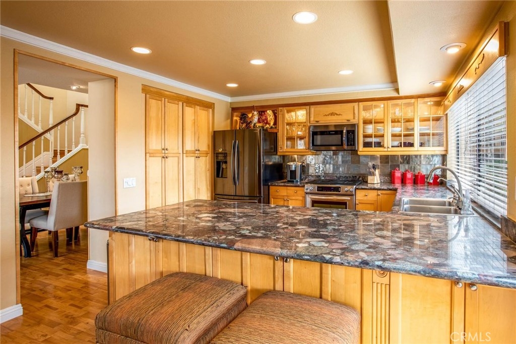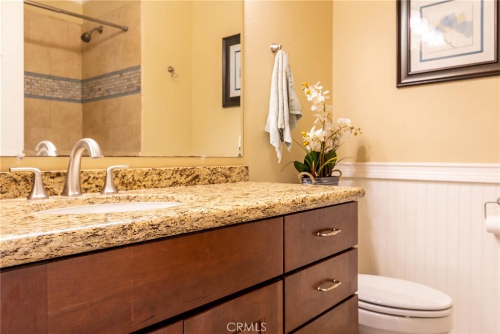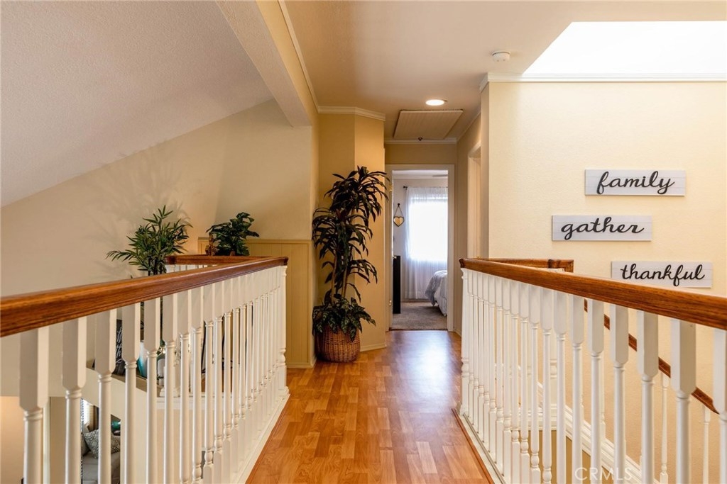 Located minutes to the ocean is the desirable community of Mariposa offering this beautiful 3bed, 2.5 bath single family home, on a quite interior track, cul-de-sac location. One of the largest in the community this is a very private end unit with an abundance of natural light from the skylights and soaring ceilings. A formal entrance leads to a stylishly upgraded great room, living room, dining room, family room & kitchen to include; wood flooring, wains coating, custom drapery, gorgeous granite counter-tops, tile back splash, new built in microwave, beautiful cabinets with glass fronts, custom window blinds, ceiling fans, crown molding & a breakfast counter. The family room offers beautiful built-ins, granite around the inviting fireplace all open to the relaxing quiet private patio with vinyl fencing. Also, downstairs is gorgeous wood flooring, 1/2 bath & direct entrance to the 2 car garage with ample storage. Upstairs the en-suite master offers custom painted walls, soaring ceilings & lush new carpet opening to the master bathroom with a custom tiled shower, dual sinks, granite counters, upgraded cabinets and walk in closet. The wood plank hall walkway leads to 2 more spacious bedrooms and upgraded bath. The HOA amenities include: the roof, exterior maintenance, landscaping, pool/spa, cable, insurance, termite and private streets. Nearby are the excellent Huntington Beach schools, the renowned beaches & ocean waves, shops, restaurants and the freeways. FHA & VA approved.