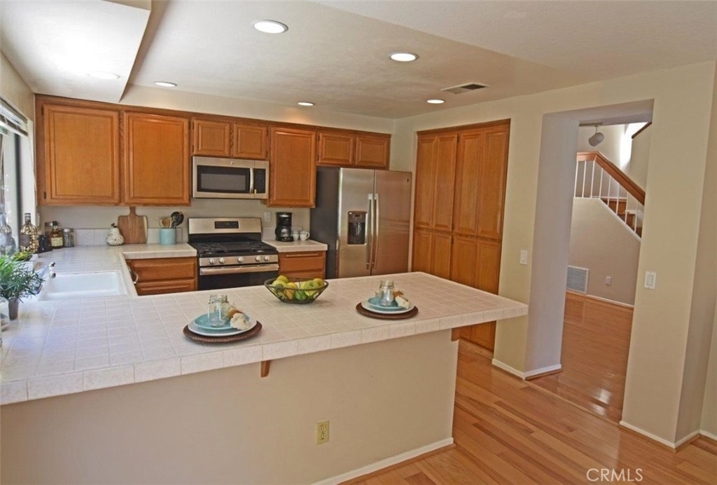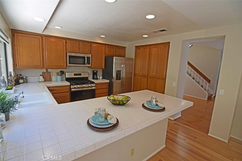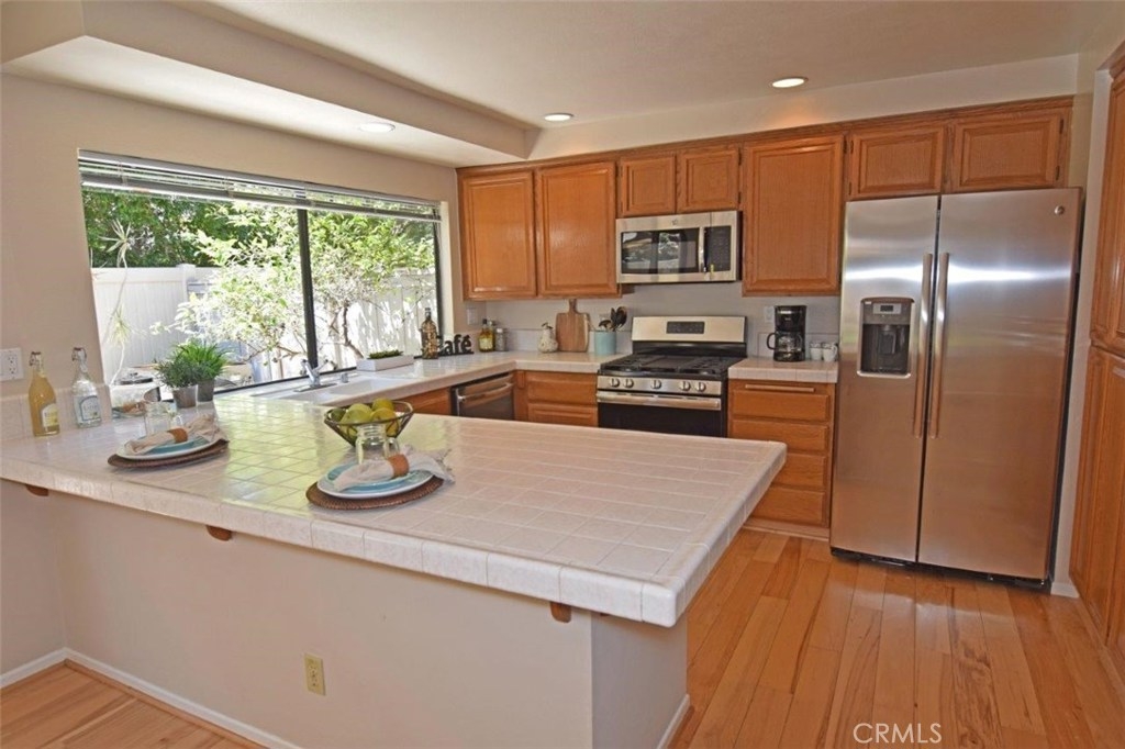 Wait until you see this absolutely gorgeous Townhome located in the Highly Desirable Mariposa Community. Rarely on the market this end-unit is the most desirable and largest floor plan with a Wonderful Quiet location. As you walk through the front door you are greeted with soaring vaulted ceilings and a beautiful open floor plan, hardwood floors, and floor to ceiling windows offering lots of natural light. This wonderful large living room opens up to the formal dining room. The family room off the kitchen adds to the open feel of this floor plan. This home features all new stainless appliances, new carpet, new paint, and much more. Association includes a pool located just steps out you front door. Convenient to shopping and restaurants, 405 Freeway & 5 miles to the beach.