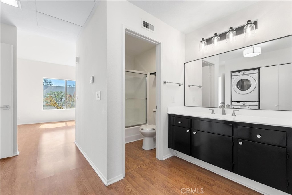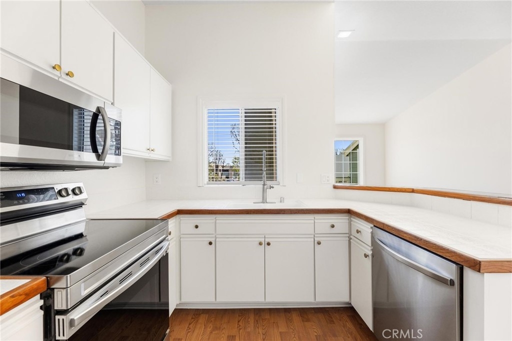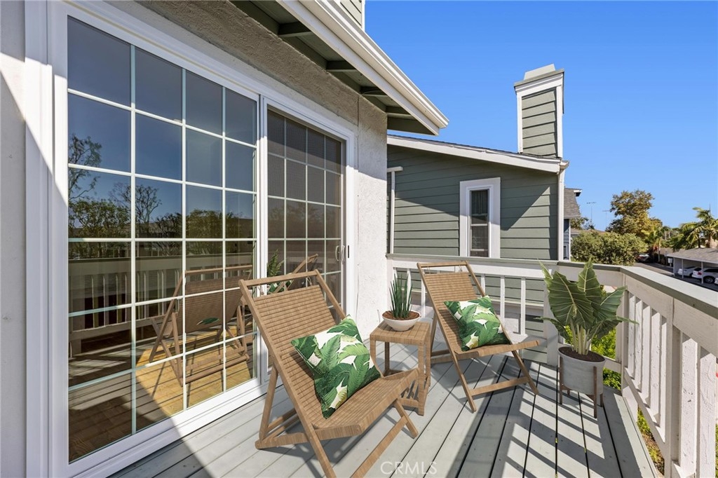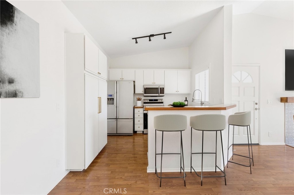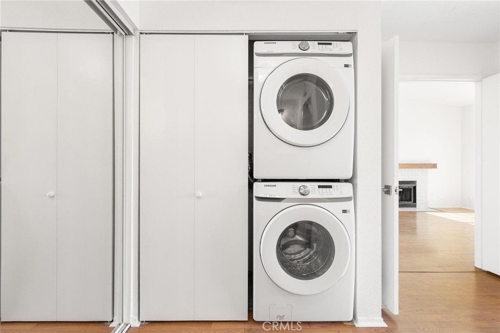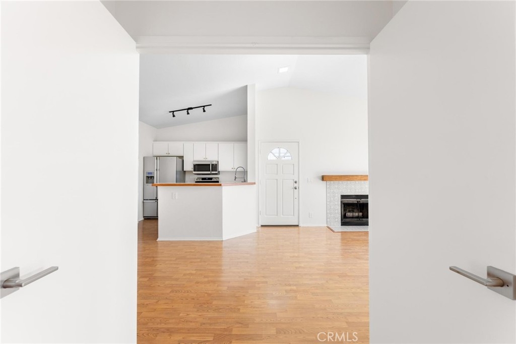 Rare, top-floor, stylishly updated 1 bedroom 1 bath condo in the meticulously maintained and security gated New Chase Community. Enter into the open floor plan as you’re greeted by an abundance of natural light complete with a contemporary tile fireplace and double vaulted ceilings. The stylish design elements begin in the kitchen with its bright white cabinets and countertops, brushed brass hardware and new stainless steel appliance suite. Capture the action from there to the dining and living spaces as you’re beckoned to the sunny patio where you can enjoy morning coffee and dining al fresco. The allure continues throughout this home with its rich honey colored wood grain floors, mixed metals and modern fixtures that radiate modern chic. Relax in the primary suite that features a stylish vanity, laundry closet with new stackable washer/dryer and double mirrored closet doors. This complex is pet friendly with walkable greenbelts as well as a large swimming pool and spa. An assigned, covered carport space with parking spot is steps away and there’s lots of guest parking for friends. Centrally located and close to nearby attractions; Centennial Park and Mile Square Park with 2 regulation golf courses, tennis courts, lake, walking paths and multiple sports fields. World class shopping and dining at South Coast Plaza in downtown Costa Mesa is just minutes away. Beach vibes close by in Newport Beach and Balboa Island. $23,000 in recent upgrades - this one has all the feels and is not to be missed!