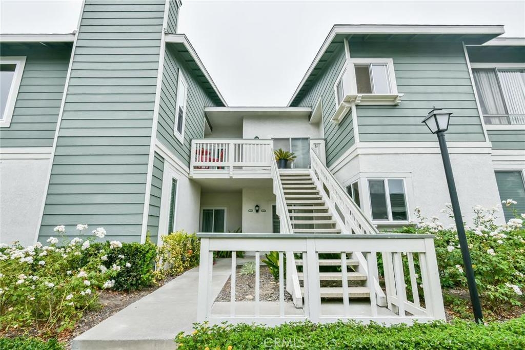 Located in the highly desirable New Chase gated community in Fountain Valley, this beautifully upgraded, top-level, 2 beds, 1 bath, 916 sq.ft. condo. Walk in and you’ll be instantly greeted by its bright open floor plan, which includes lush carpeting in spacious living area with soaring vaulted ceilings and a cozy fireplace, fresh contemporary colors walls, lovely wood-like parquet floors in the kitchen and hall area, dining area with ceiling fan, lots of natural lighting through double-pane windows throughout-out, and central A/C and Heating. The chef's gourmet open kitchen boasts granite countertops/breakfast bar, stunning custom cabinets, and modern white appliances. The master bedroom includes a large wardrobe with mirrored closet doors, bathroom with beautiful wood vanity with granite countertop, and tile floors. Second room is great for an office or guest bedroom. Additionally, in-unit laundry closet with stackable washer/dryer for convenience. Step outside the sliding glass door to enjoy some fresh air on the private patio, and there's an extra tall closet for storage. Relax and cool off at the community pool with spa! Spend free time at nearby Centennial Regional and Mile Square Park, and easy access to the Santa Ana River Trail down to the beach!
