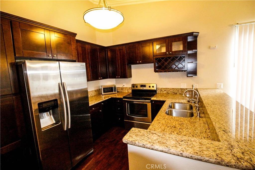 This charming upper unit New Chase condo features 2 bedrooms, 1 1/4 bathrooms, living room with fireplace, vaulted ceiling, and open kitchen with breakfast bar, tons of upgraded cabinets and granite countertop space,with stainless steel appliances There is also indoor laundry (stacked washer/dryer included!) and central heat and air conditioning. Easy care laminate flooring throughout the condo, with ceramic tile.Your private balcony also has an adjacent storage unit. It's located at the rear of the community so you're away from busy street noise. This gated community includes a gated pool and spa, and is in convenient proximity to Fountain Valley elementary and high schools, in the Garden Grove School District, shopping, freeways, The Santa Ana River Trail and Centennial Park.