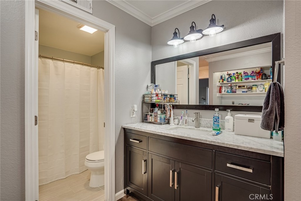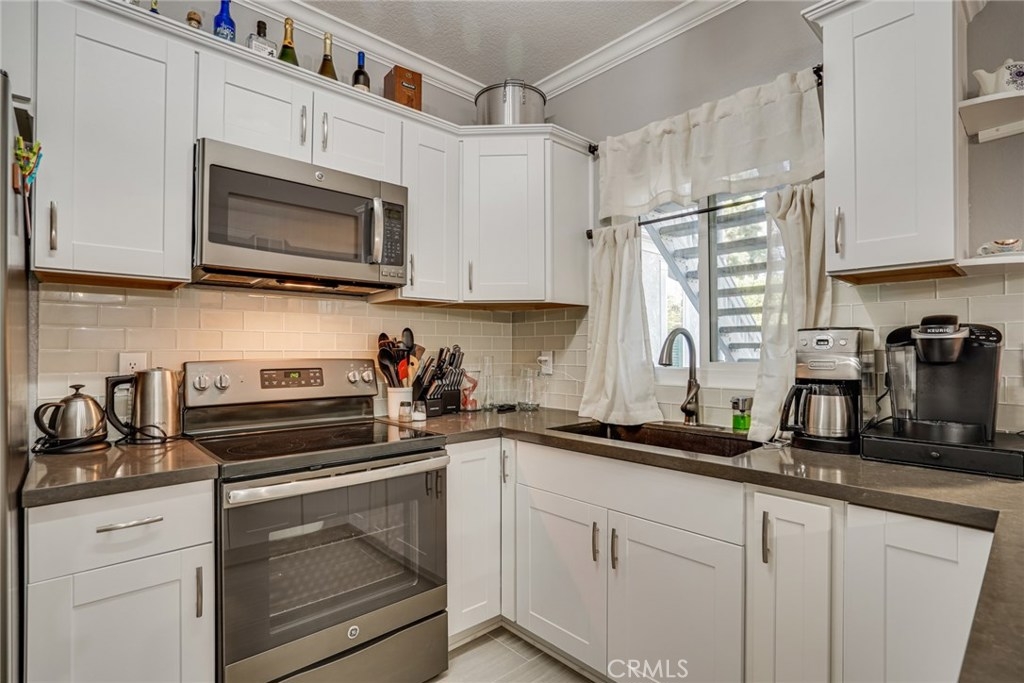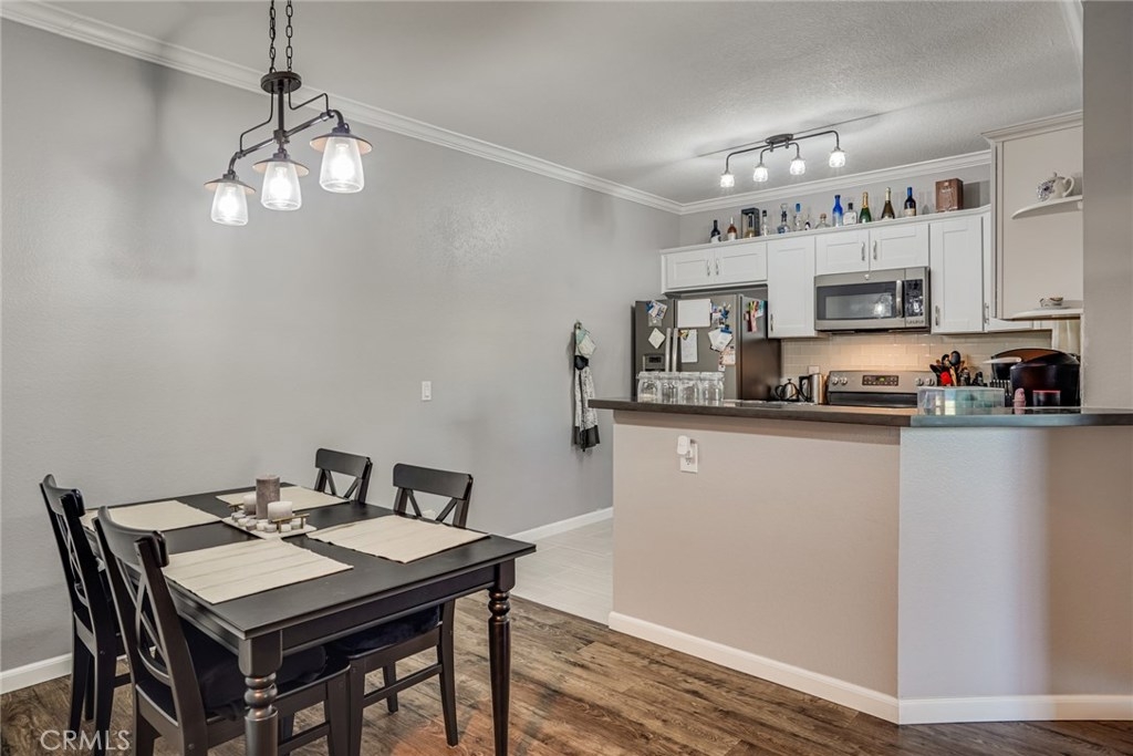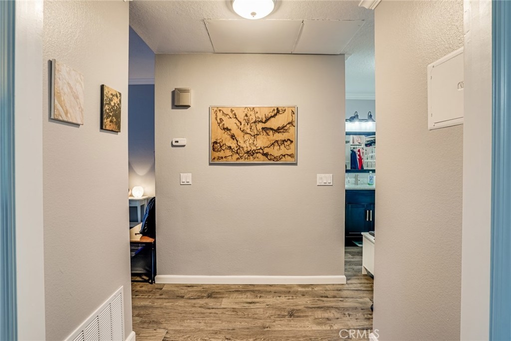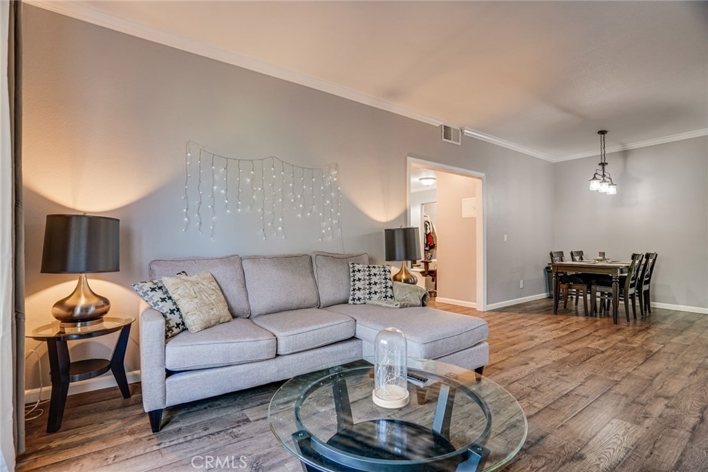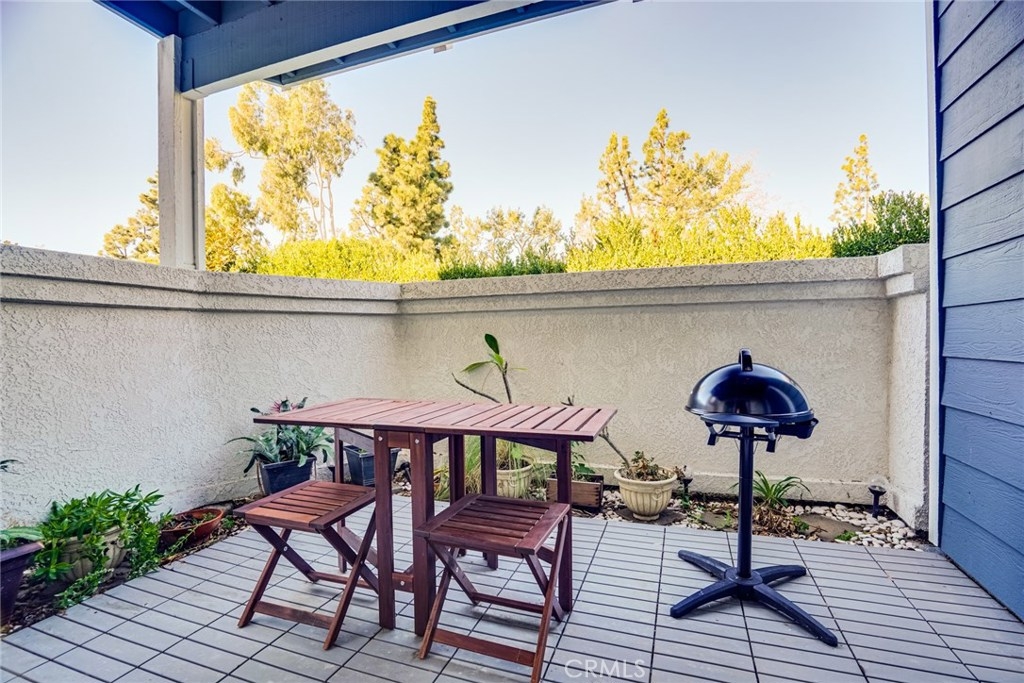 Welcome home to this beautifully updated 1 bedroom 1 bath open concept ground level condo. Located in a secluded area of the New Chase Community in Fountain Valley. The kitchen is outfitted with white shaker cabinets, granite counters and wood grain tile. The home features 9 ft ceilings and crown molding and laminate flooring in the entirety. The home has central heating and A/C and a toasty wood burning fire place. The home has inside laundry, with all appliances included. The double Payne slider exits to a generously sized patio with addl. outside storage. The nicely maintained grounds include a resort style pool with 2 in ground spas and automated gated entry. This home has an assigned carport and additional parking in the community for visitors. The complex is adjacent to the Santa Ana River Trail with direct access through a secured gate, for hiking and biking. Centennial Regional Park is nearby, Mile Square Park a short drive away. This turnkey home is ready to start your new year in comfort. FHA VA, approved 3D tour https://my.matterport.com/show/?m=9hbKmFpcE13&mls=1&ts=2