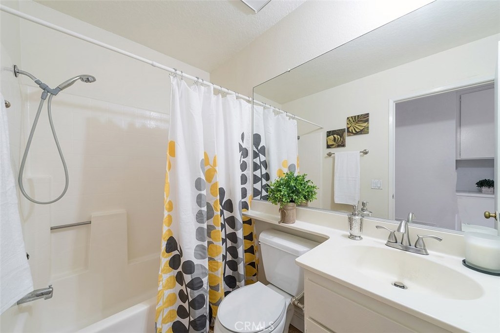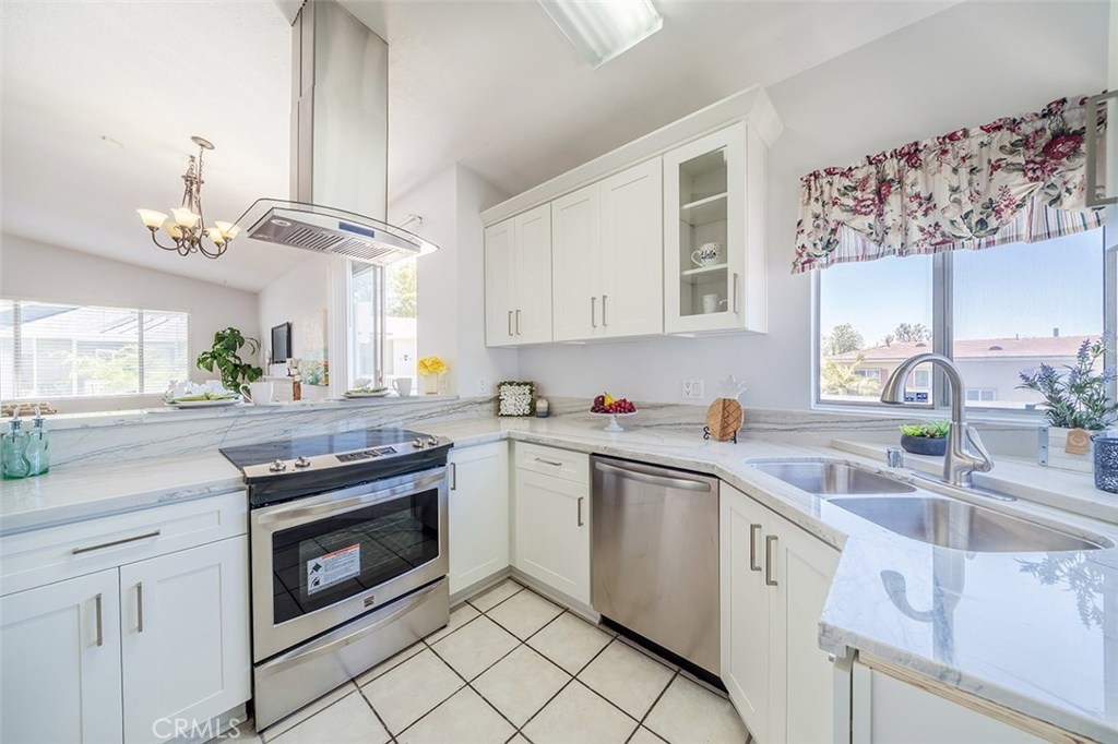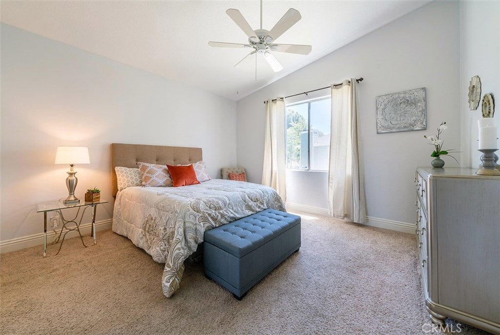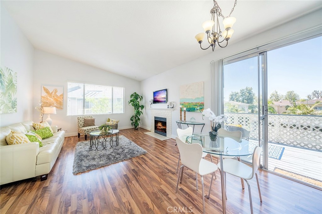 Located in the gated community of New Chase, this beautiful end unit condo is in a great location towards the back community and has stunning upgrades throughout! Kitchen has been extensively remodeled with new modern quartz counters, new stylish, soft close custom white shaker style cabinetry, custom stainless steel hood, and new stainless steel appliances. The breakfast bar opens the kitchen to the dining area and living room where you're greeted by vaulted ceilings and an abundance of natural light through large windows and sliding glass door leading to balcony with large storage area. Living room boasts laminate wood floors, and inviting subway tiled fireplace. Both bedrooms are well-sized with vaulted ceilings and ample closet space. The master bedroom has views of the spa, attached bathroom with dual sinks, and a must-see walk in closet with custom shelving! Other features include inside laundry, newer designer style paint, baseboards, and central AC & heat. Quiet community with pool and spa in great location close to schools, parks, golf courses, shopping, and dining!
