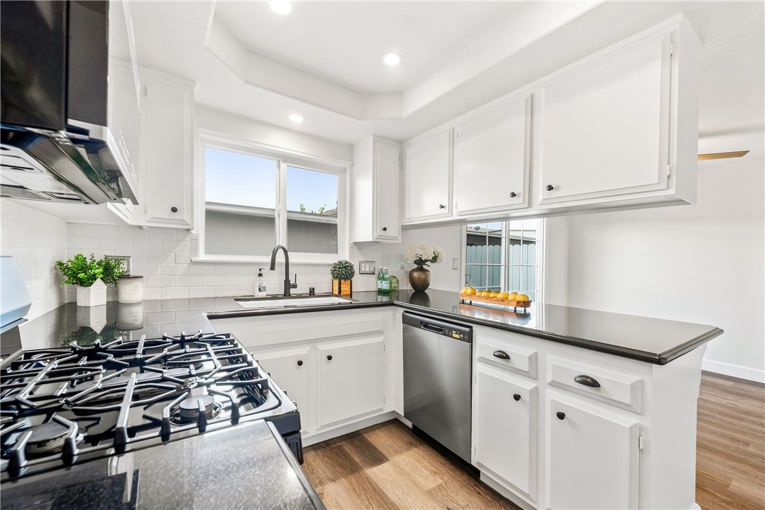 Welcome Home! Stunning Move-In Ready End unit enjoys extra natural light facing the greenbelt. The kitchen is well-equipped with granite counters and stainless steel appliances, and luxury vinyl floors have been run throughout the main level living areas and upstairs bedrooms. Designed with utmost attention to detail, the open-plan interiors has been updated throughout. The spacious kitchen is light and bright and overlooks the dining room and back patio. Both bedrooms are located upstairs and are very spacious. Paradise Manor offers fantastic amenities, a quiet neighborhood, and lovely greenbelt views. It’s also a short distance to shopping malls, restaurants, freeway access, public schools, fitness centers, Fountain Valley Regional Hospital, Mile Square Park, Huntington Beach, and San Diego. This community offers detached garage parking, in-kitchen laundry hookups, and a swimming pool. Call Today!