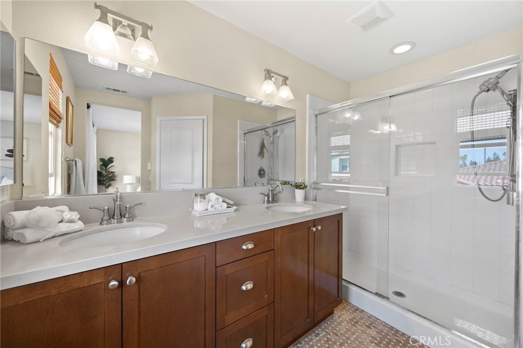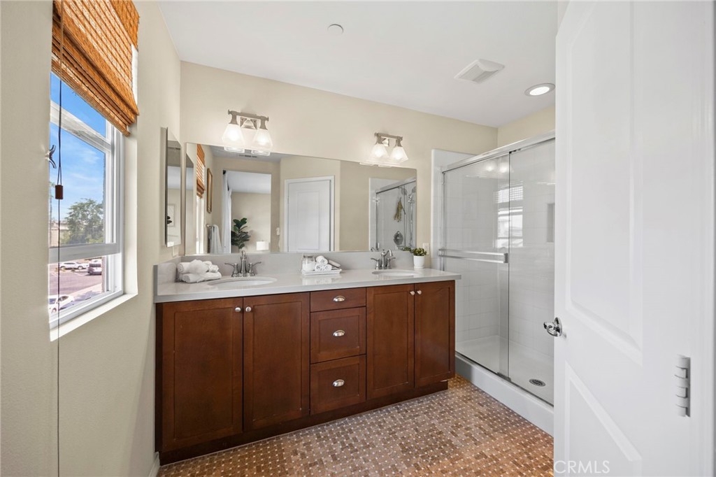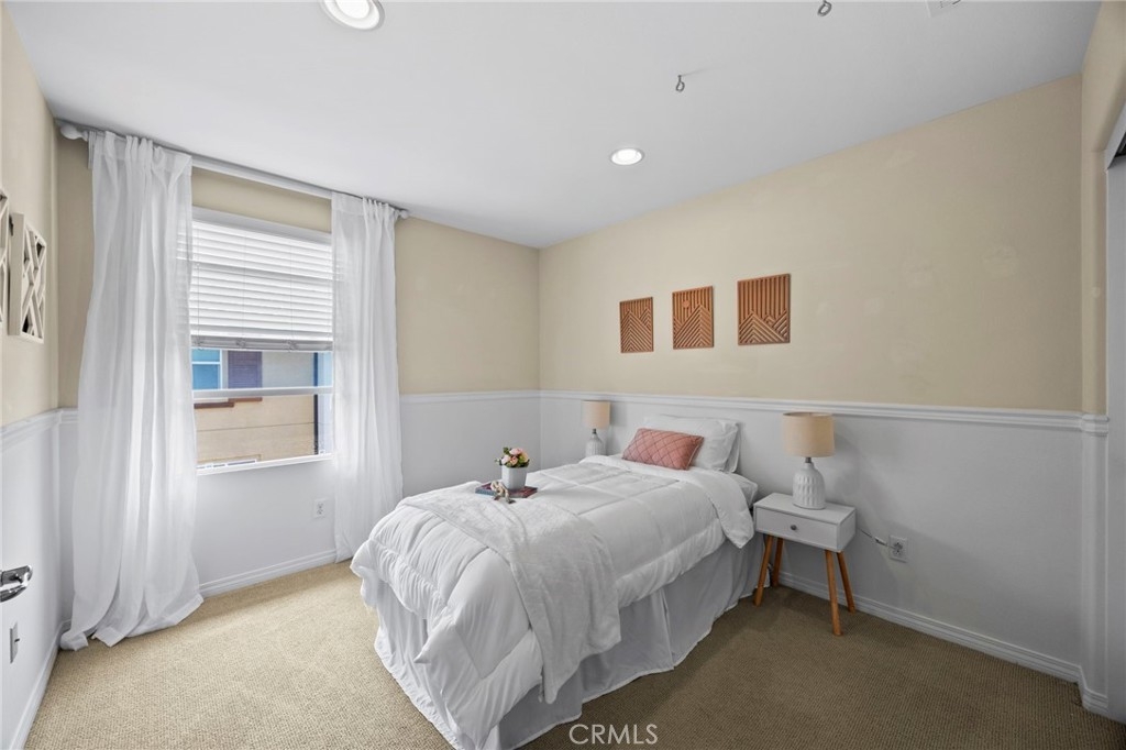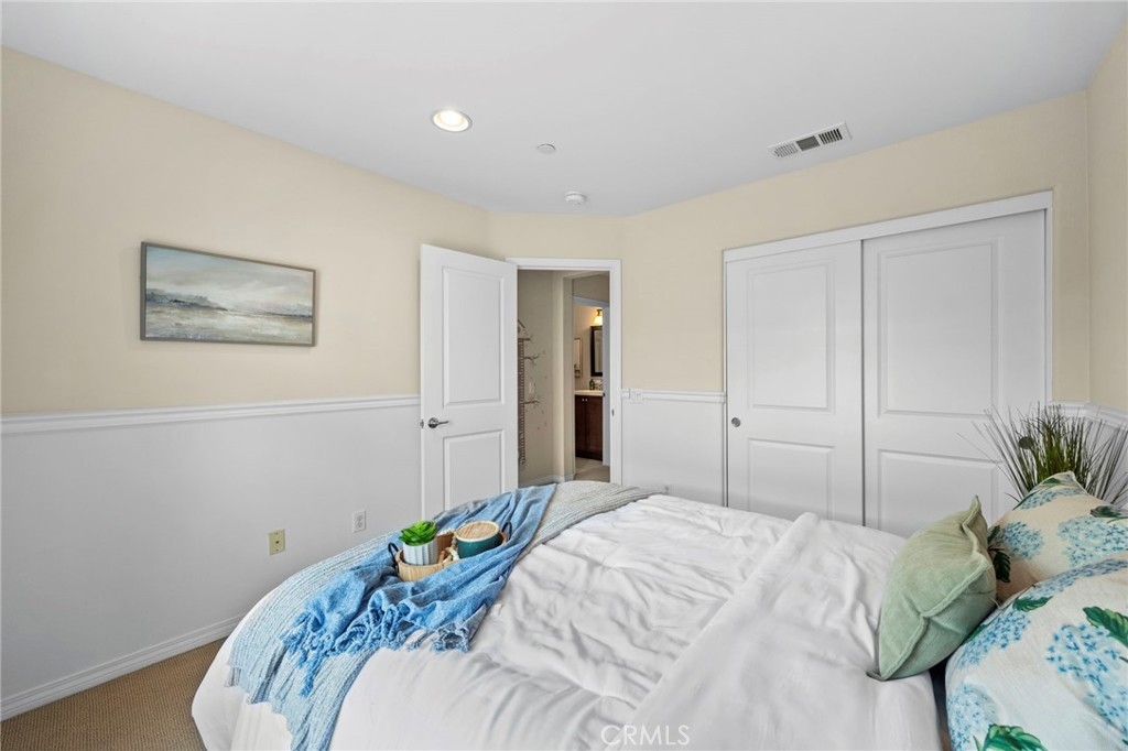Welcome to Solana Walk; a highly sought after gated community built in 2012. This beautiful tri-level unit was the model home for Solana Walk. It comes with custom window treatments, recessed lighting, built in speakers, and a home security system. This 1,853 sq ft home features 3 bd + den, 2 full bathrooms, and 2 half bathrooms. The downstairs bedroom is currently an open den/office with custom built in bookcases and its own powder room. It can easily be closed off to serve as a private bedroom. On the second level, you find a spacious great room next to the large kitchen, a study nook/workspace, full dining area, and comfortable living space. The bright kitchen features quartz counter tops, large walk in pantry, and stainless-steel appliances. The study/home office nook is adjacent to the kitchen and leads out to the private balcony. All remaining 3 bedrooms are located on the top floor. The primary suite has a spacious walk-in closet, dual sink vanity, and water closet. The spacious laundry room located upstairs fits a full sized washer and dryer. Parking is no problem with the attached two-car garage and plenty of guest parking spots. The low HOA covers a resort style pool, cabanas, covered outdoor kitchen, dining area, and large outdoor fireplace. There’s are no mello-roos or special assessments for this newer community. It is ideally located near several shopping plazas, restaurants, and entertainment. Just outside the community gates is Fountain Valley Public Library, City Hall, Boys and Girls Club, Veterans Park, Los Alamos Park, several preschools/daycares, and multiple EV chargers. Conveniently adjacent to the 405-freeway making for easy commuting all over Orange County.
