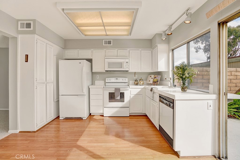 Beautiful and move in ready town home in the highly sought after Tiburon North community of Fountain Valley. Recently painted throughout and ready for it's new owner this home has so much to offer. Spacious living area greets you upon entering with plantation shutters on the windows that overlook the serene greenbelt area. The living room opens to a dining area with a wet bar. Large kitchen opens up to a breakfast area / family room with sliding glass doors for access to the private garden terrace ideal for entertaining and with direct access to your oversized 2 car garage with laundry hook-ups. Large master suite with a master bath. The other two upstairs bedrooms are also very spacious. Enjoy the community pool, clubhouse and quiet serenity of living in Tiburon North.