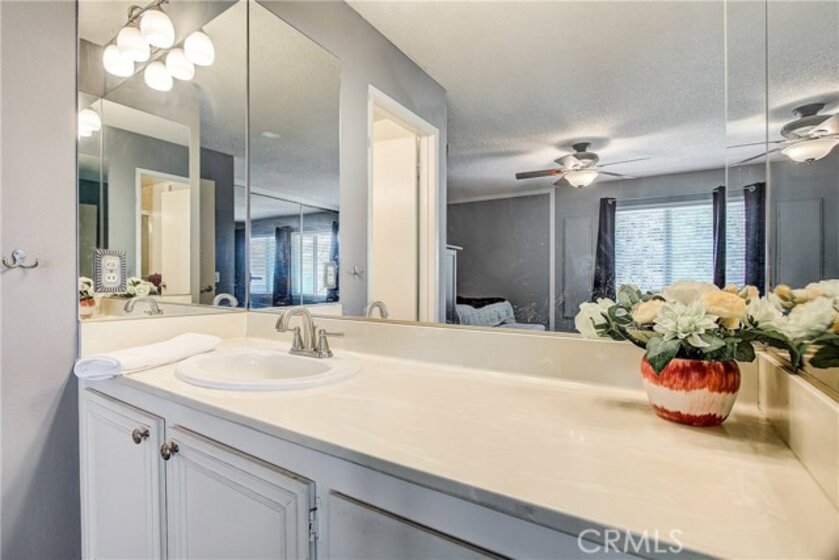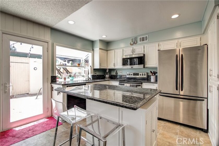 Beautifully updated 3 bed, 2.5 bath home with recessed lighting, crown molding, new wood laminate flooring, custom, designer inspired paint, and modern touches throughout! The light and bright kitchen features white cabinetry with an abundance of storage space, granite countertops, a large island with breakfast bar seating and storage, and stainless steel appliances! The kitchen has a sunny garden indow that overlooks your private backyard. Adjacent is the family room, which has a newer dual paned sliding door to the large, private, patio, and flows into the dining area with a wet bar, which is adjacent to the spacious living room. The massive master bedroom features a large ensuite bath and has a full wall of mirrored closets. The secondary bedrooms are both generously sized, all three have ceiling fans, custom paint, and lots of natural light. The garage has the laundry hookups and private access from the patio directly into the kitchen. Enjoy the community amenities including a sparkling swimming pool and rec-room. This centrally located home is close to shopping, dining, and entertainment. Don't wait!