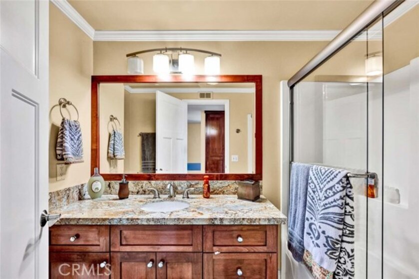 Beautifully upgraded condo in the sought-after Tiburon community. This popular Monterrey model offers 3 bedrooms, 2.5 baths, and approximately 1,656 square feet of well-designed living space. The expansive living room flows seamlessly into the dining area, featuring a built-in buffet with granite top, ideal for entertaining. The remodeled kitchen showcases updated cabinetry, granite counters, recessed lighting, and stainless steel appliances. A tastefully updated half bath is located downstairs, while the upstairs bathrooms features upgraded vanities, granite counter tops and fixtures. Dual pane windows and sliders throughout enhance comfort and efficiency, and the downstairs offers attractive wood laminate flooring for easy maintenance. Upstairs, the spacious primary suite includes a private ensuite bath and generous closet space. Secondary bedrooms are well-sized and versatile. Enjoy air conditioning for added comfort, along with a welcoming brick patio that provides the perfect setting for relaxing or entertaining, with direct access to the garage and laundry area. Ideally located directly across from one of the community’s five pools, Tiburon South also offers two clubhouses and a tot lot. Conveniently situated near shopping and dining, across from Memorial Medical Center, and close to Mile Square Park with golf, sports fields, and open space. Easy access to the 405 freeway and approximately five miles to the beach. A great floorplan, excellent location, and pride of ownership make this a standout opportunity in one of Fountain Valley’s most desirable townhome communities. Come and enjoy this great location and all that Orange County offers!