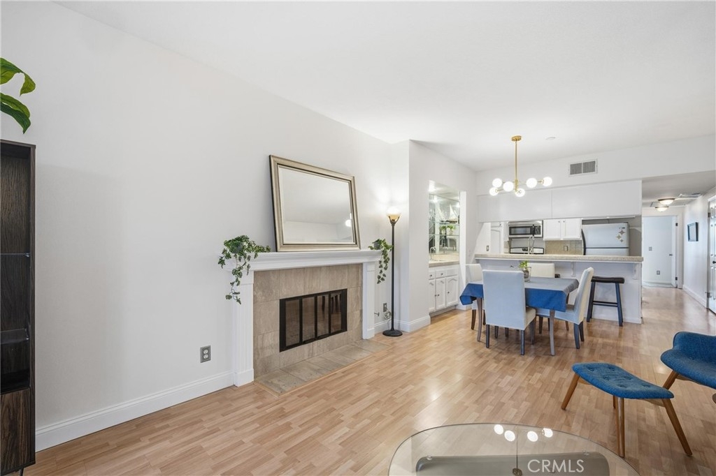 Located in the desirable Los Caballeros community on the Huntington Beach–Fountain Valley border, this upper-level 2-bedroom, 2-bath residence offers comfort, privacy, and convenience just minutes from the coast. Situated on the top floor with no neighbors above, the home benefits from added soundproofing in the walls and floors, enhancing everyday comfort and quiet enjoyment. The primary bathroom was recently remodeled, with the rest of the home being freshly repainted making this condo truly move-in ready. The interior features laminate flooring throughout the main living areas and carpet in the bedrooms. The spacious living room is highlighted by a beautifully finished fireplace and large sliding glass doors that fill the space with natural light and refreshing coastal breezes. The kitchen offers tile countertops, bar seating, and stainless steel appliances, ideal for everyday living and entertaining. A separate laundry room provides added functionality with ample storage space. The unit includes a covered parking space, along with plentiful additional parking for guests. Conveniently located near beaches, dining, shopping, and freeway access, this home delivers easy Southern California living.