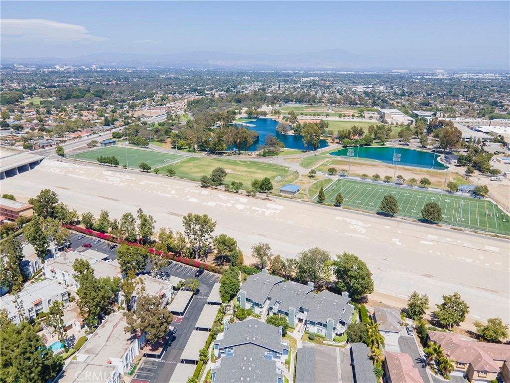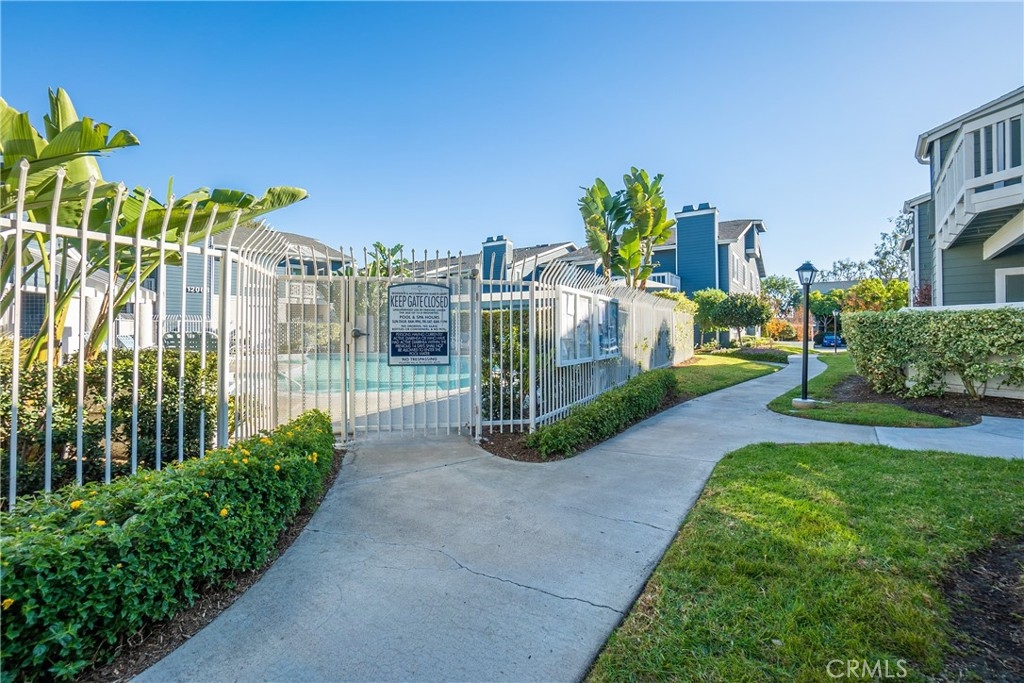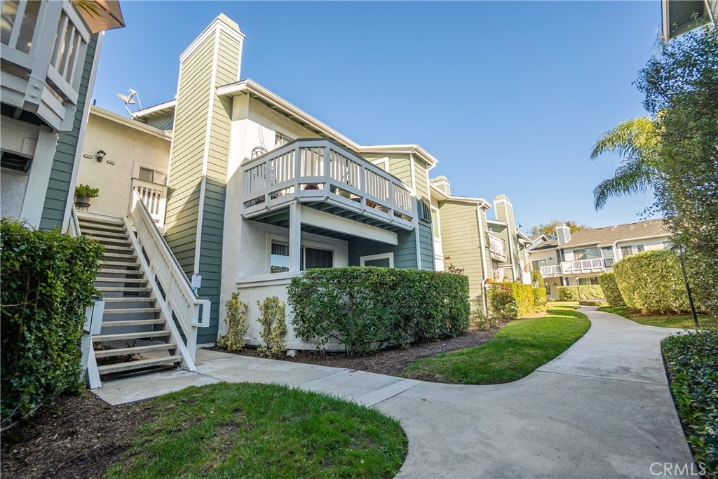 Welcome home to resort living in this upper 1 bedroom, 1 bathroom condo located in a safe and quiet community right across from the pool and spa! Nice open floor plan with lots of natural light. Spacious living room with high ceilings, wood burning fireplace and direct access to your large private balcony with a large storage closet. The kitchen has recessed lighting, tile countertops with oak wood trimming, a breakfast bar and a dining area which is connected to the living room. Seller installed a reverse osmosis system in the kitchen which delivers high quality drinking water. Double french doors lead you into the hallway area where there is a stackable washer and dryer. Large closet with plenty of storage outside of the full bathroom that has a tub and shower. The bedroom is large with a beautiful view of the pool and spa. The community is very well kept with lots of grass, trees, pathways and direct access to the Santa Ana river where you can walk, run or ride your bike. Controlled access and dog friendly with no breed restrictions, plastic bag dispensers, plenty of guest parking, close to shops, restaurants, freeways, and Mile Square Park. The unit is located in a prime location within the complex, has an amazing layout plus you are a short drive to Huntington and Newport Beach. Don't miss this opportunity to own a home in the desirable New Chase community! Check out the virtual tour and video!
