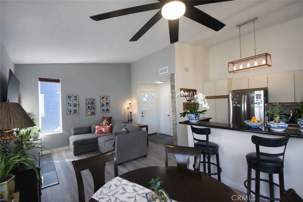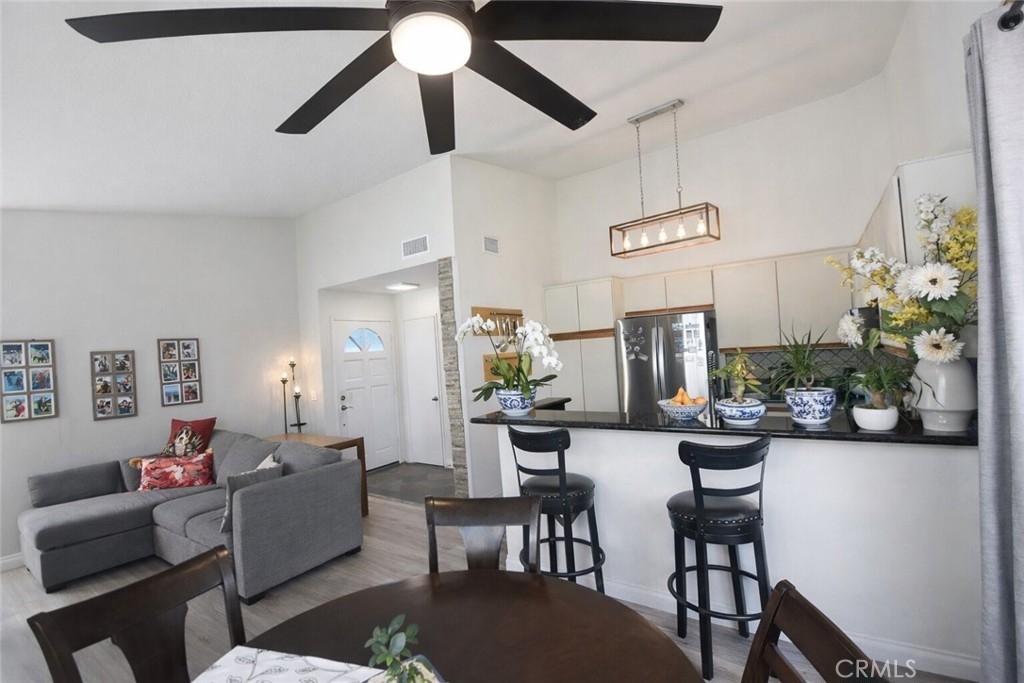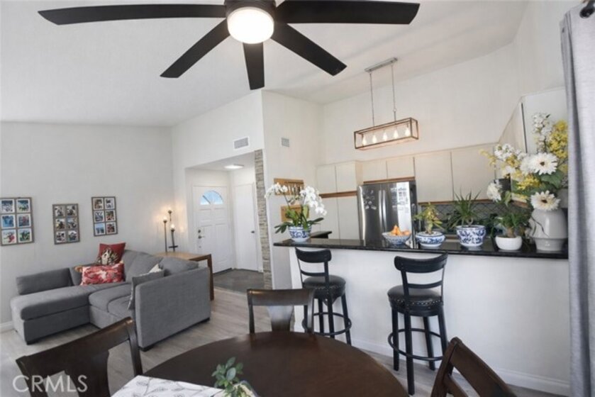Prime Fountain Valley Opportunity! Welcome to a beautiful and cosy home in the gated New Chase community with 2 bedrooms and vaulted ceilings that is completed with high end finishes. Elevating everyday living, the kitchen includes a high-performance Bosch dishwasher (just 3 years young), a newly replaced InSinkErator garbage disposal, and a refrigerator conveyed with the sale. The suite of smart WiFi-enabled appliances—microwave, washer, dryer, and Honeywell thermostat—delivers seamless modern convenience and smart home integration. Enjoy year-round comfort with a brand-new 2026 air conditioning system, complemented by a new heat pump, thermostat, AC wall vents, and return air system. Retreat to the generously sized primary bedroom and newly refreshed full bathroom, where a luxurious vanity and sink upgrade awaits, alongside a versatile second private room perfect for an office, nursery, or guest space. Peace of mind is assured with all plumbing fixtures and valves recently replaced, plus a stylish new dining area ceiling fan. Residents enjoy premium parking: one assigned covered carport space, permits for two additional vehicles (totaling three), and convenient online temporary permits for overnight guests. Perfect location with only minutes to scenic trails, parks, vibrant shopping centers, fine dining, and major freeways, this turnkey gem represents an exceptional starter home or savvy investment in Fountain Valley's most sought-after area. The community is well kept and dog-friendly with lots of grass, trees, pathways and doggie bag dispensers. Don’t miss this opportunity - schedule your showing today!