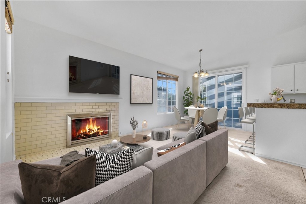 Discover this inviting upstairs unit nestled in the highly sought-after Chase community. Boasting a prime location, this home offers a bright and airy atmosphere with vaulted ceilings and fresh paint throughout. Step inside to find an open floor plan perfect for relaxation or entertaining. Cozy up by the fireplace or enjoy the breeze from your private balcony. The spacious master bedroom is a true retreat, featuring a walk-in closet with built-in shelves for easy organization. Recent upgrades include a new air conditioning compressor, ensuring comfort in every season. Residents will appreciate the convenience of being just a short drive from Mile Square Park, popular dining spots, and shopping hubs like Costco and IKEA. Take advantage of the community pool and spa just steps away, along with the HOA-provided amenities, including grounds maintenance, water, trash, and more. Don’t miss your chance to own this exceptional home in a fantastic location!