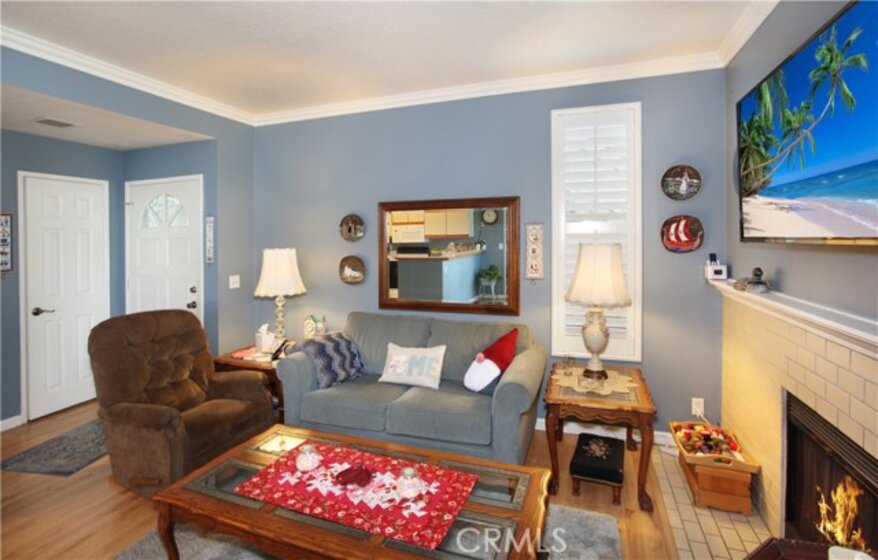 This cozy home is located in a desirable part of the beautiful community of New Chase. The master bedroom has a walk in closet and another full size closet with mirrored doors. The master bedroom also has a uniques feature which is a vanity area with a sink. The kitchen has lots of cabinet space and offers reversed osmosis to purify the water. The entire home has laminated wood floors and new paint. The warm wood burning fireplace is in the living room. The windows are dual pane with attractive plantation shutters. There is a laundry closet that comes with the washer and dryer. The unit is on the first floor. The complex has two gated entrances, two spas and a lovely resort style heated pool plus an immaculate landscape that yields roses with other nice flowers and greenery. Close to everything. You have to see it to appreciate this gem of a home.