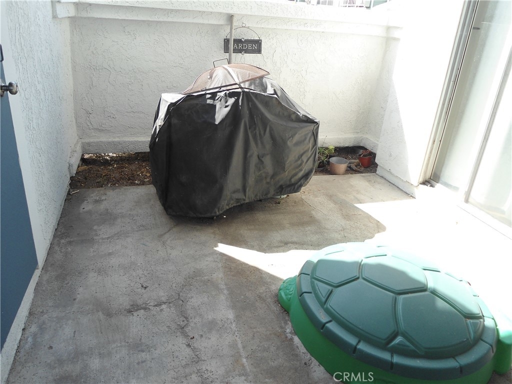 Home Sweet Home! This lower unit is conveniently located across from the community pool. This charming 2 bedroom 1 bathroom has an open floor plan that gives natural light. With laminate flooring throughout. That covers the hallway, living room, dining room, and kitchen. The updated kitchen has stainless steel appliances. Living room features a fireplace. Both bedrooms are spacious one of them having a walk in closet and an additional sink. The patio has a storage unit with ample space. Laundry room has a washer and dryer that is included. It's a must See!