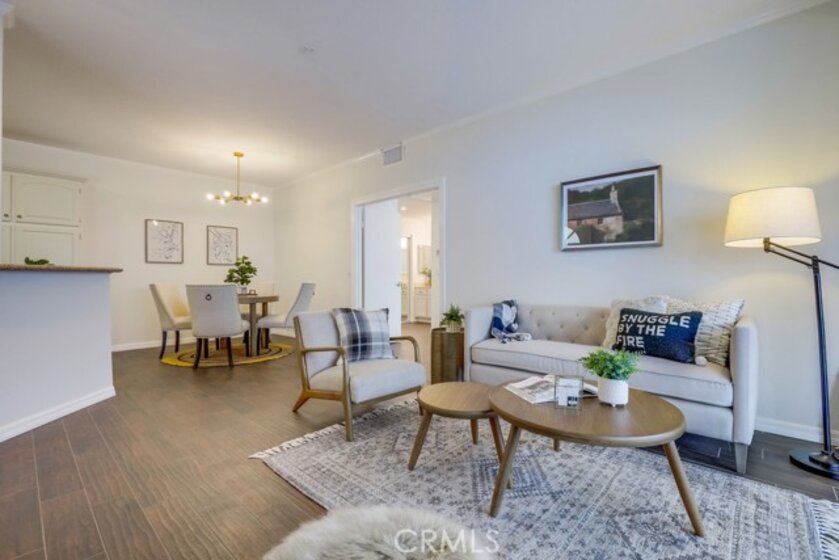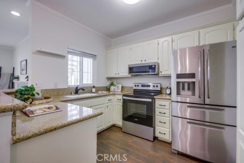 This stunning 1 bed, 1 bath main floor condo, nestled in the secure New Chase community, offers an ideal blend of comfort and style. The open floor plan seamlessly connects the kitchen to the dining area and living room, creating a spacious atmosphere. Enjoy cozy evenings by the charming brick fireplace. The modern kitchen is a chef’s delight, featuring granite countertops, and stainless steel appliances. The oversized main bedroom boasts ample closet space and a luxurious en-suite bathroom. Indoor laundry facilities, including a stackable washer and dryer. Wood-looking tile floors throughout the entire unit add a touch of elegance. Step outside to a large, private patio where you can enjoy outdoor relaxation in a serene setting. All utilities except electric, cable, and internet are included, making this home as hassle-free as possible. Additionally, community amenities such as the pool and spa. This move-in-ready condo also includes a washer, dryer, and fridge, ensuring a seamless transition to your new home. Don’t miss out on this immaculate home in a prime location.