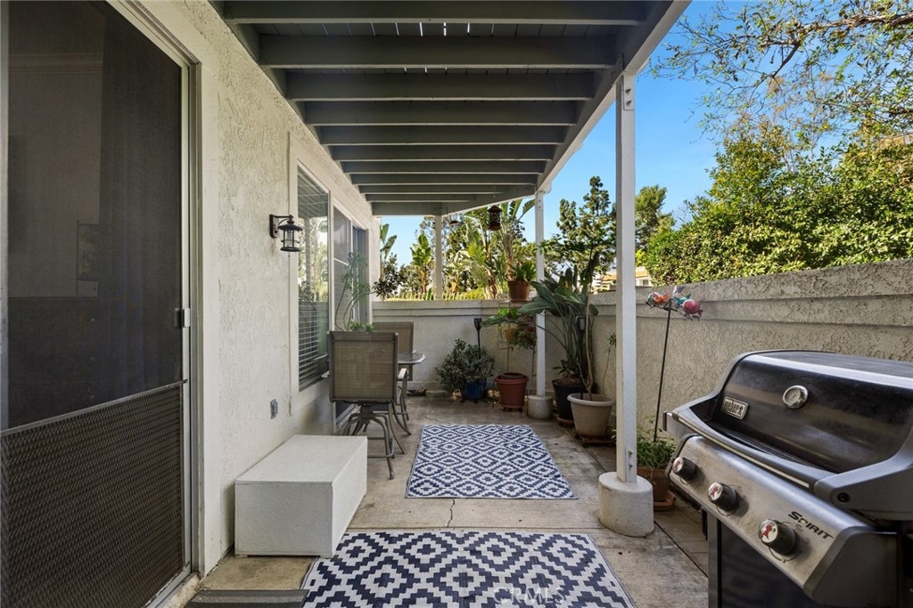 Charming First-Floor Condo in the Gated New Chase Community! This beautifully updated 2-bedroom, 2-bathroom condo offers the perfect blend of comfort and convenience in one of the most sought-after communities. This home features brand-new flooring and a spacious private patio, perfect for outdoor relaxation or entertaining. Step inside to find an inviting open floor plan, where the living room flows seamlessly into the dining and kitchen areas. The cozy fireplace adds warmth to the space, while sliding glass doors lead you to the large private patio, creating a perfect indoor-outdoor living experience. The well-appointed kitchen offers ample counter space and cabinetry, making meal prep effortless. The primary suite is a true retreat, featuring dual sinks, walk-in closet, and a private water closet for added convenience. The second bedroom is equally spacious, with easy access to the full guest bathroom. Additional highlights include in-unit laundry hookups, newer HVAC, and ample storage throughout. This property has brand new flooring and has been freshly painted. Enjoy resort-style amenities, including two newly remodeled spas and a remodeled sparkling pool, all just steps away. With water and trash included, gated security, and an assigned covered parking space plus a guest parking pass, this home offers both comfort and peace of mind. Centrally located, you're just a short drive from Mile Square Park, South Coast Plaza, Costco, shopping malls, and the 405 & 22 Freeways, making commuting and entertainment a breeze. Don’t miss this incredible opportunity to own a turn-key home in the desirable New Chase community!