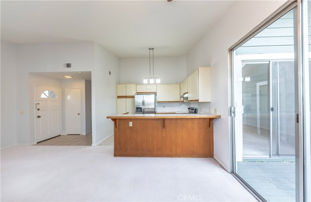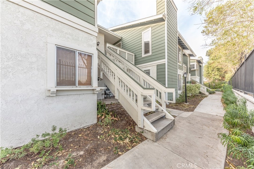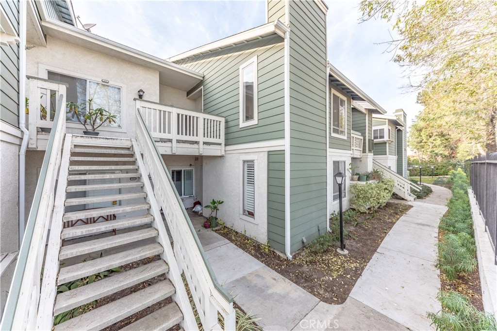 An exciting opportunity to own an amazing unit in the New Chase gated community complex, Fountain Valley! Upstairs condo with 2 bedrooms and 1.25 bathroom. Ceramic tile floors, carpet throughout, high Cathedral ceilings and new interior paint. The kitchen features all-new stainless steel appliances, lighting fixtures and has a breakfast counter to separate the dining area. Master bedroom has a walk-in closet, lots of natural light and access to the private balcony. Living room has a cozy fireplace and also balcony access through a sliding glass door. Hidden inside laundry area in the hallway closet. Extra storage space is located on the large balcony. Peaceful view of the riverbed from the balcony and dining room. Community amenities include a pool and spa. Low HOA pays for trash and water. Seller is offering a carpet allowance for you to have fresh flooring at move-in. This bright and airy home is centrally located near restaurants, shopping centers and Mile Square Park.