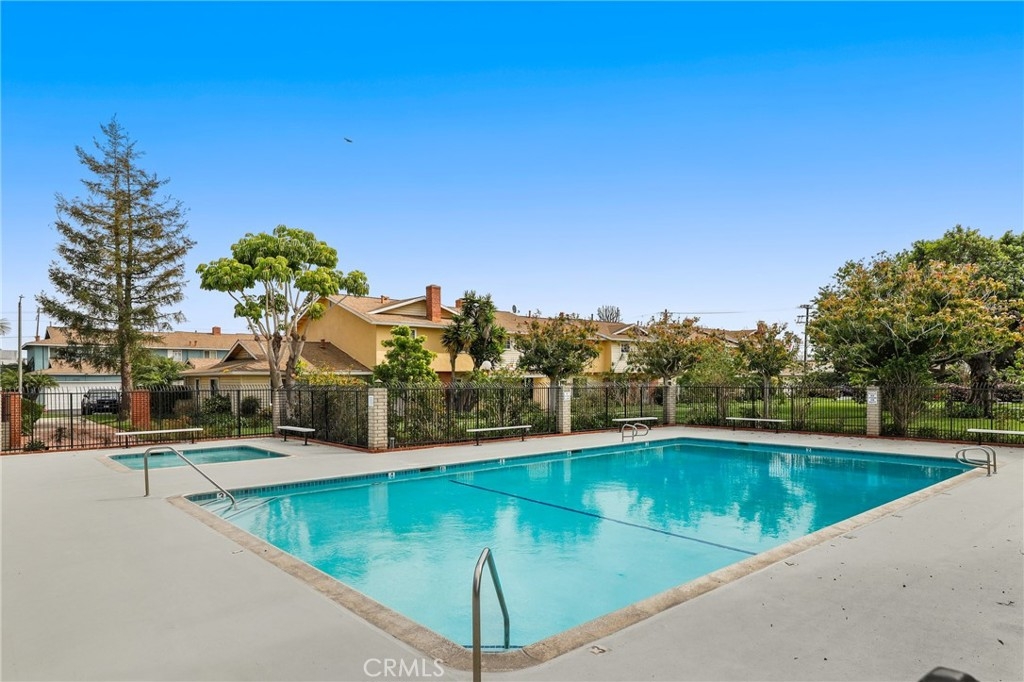 Welcome to this beautifully maintained single story townhouse located in the desirable Harbor Valley community of Fountain Valley. This rare end unit offers privacy, natural light, and a peaceful setting with views of the community's open green space, pool area, and sport courts. The home features a comfortable and efficient floorplan with one bedroom and one bathroom, designed with an open layout that connects the kitchen and living area for an inviting living space. The galley style kitchen includes laminate countertops and ample cabinet storage while remaining open to the main living area, making it ideal for everyday living and entertaining. Recent improvements include new hard surface flooring throughout the interior, creating a clean and modern feel from the moment you enter. The bathroom has been thoughtfully updated and features a stunning walk in shower with stylish finishes. The home is also equipped with a newer split system HVAC providing both heating and cooling for year round comfort, along with a newer upgraded electrical panel. The private patio offers a versatile outdoor space and includes a large storage shed that can serve as additional storage, a hobby room, craft space, or small workshop. From the patio you have direct access to the two-car garage, which includes laundry hookups and plenty of room for parking and storage. This desirable end unit location provides beautiful views of the expansive community open space and recreation areas. Harbor Valley is a well established and well maintained community with mature landscaping, plenty of guest parking, and low HOA dues. Conveniently located near shopping, restaurants, and everyday amenities, this home is also just a short drive to Mile Square Park and approximately 20 minutes from the beach. With central Orange County access and close proximity to major freeways, this location offers both comfort and convenience. A wonderful opportunity to own a thoughtfully updated home in one of Fountain Valley's most established communities.