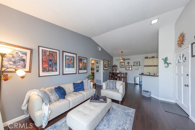 Beautiful turn key, spacious one bedroom condo. A must see! Bamboo flooring, custom built in closet storage, Argon gas filled windows, wood burning fire place, with the most beautiful views of the sunset! Quiet and friendly community with a pool and two jacuzzies! Beautiful green belt for walking, and access to the Santa Ana river bed, for biking or jogging.