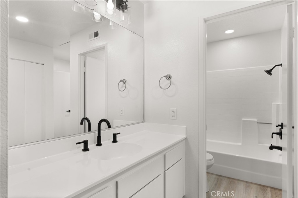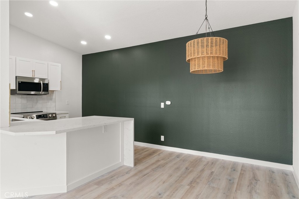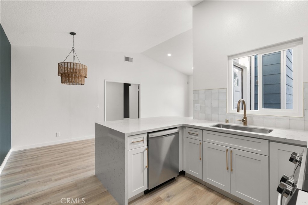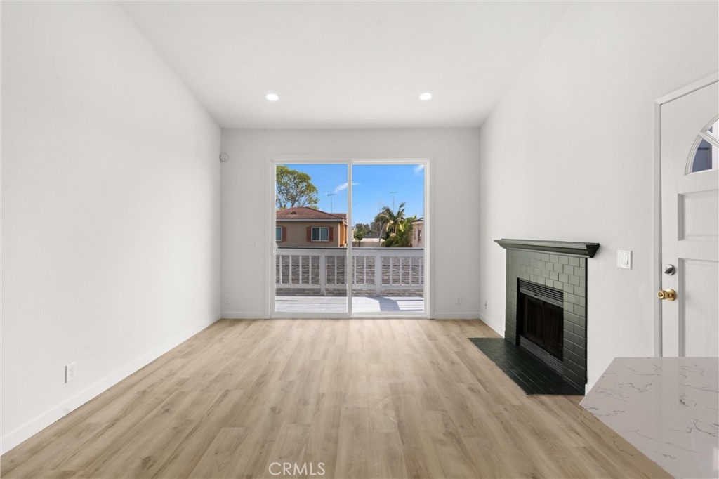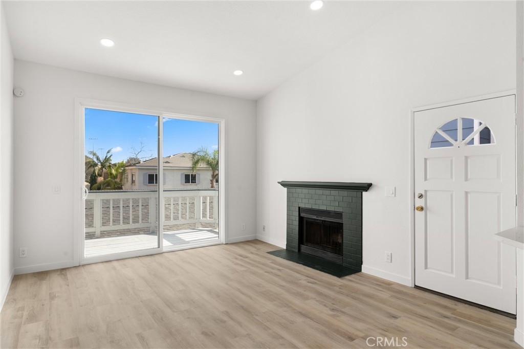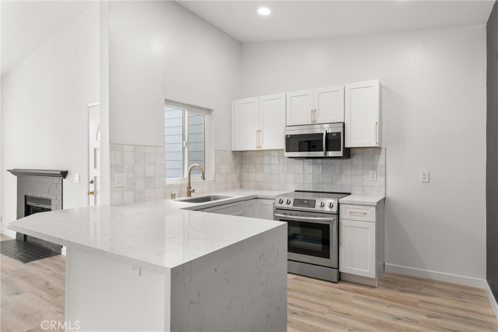 Welcome home to this newly renovated upstairs unit located in the gated, quiet community of New Chase! This property features one bedroom and a full bathroom, living room with fireplace, and a private wood patio. The kitchen showcases white shaker cabinets, hardwood flooring, and a unique waterfall feature on the quartz counters. Additional updates to the home include recessed lighting, new sliding doors and windows, and accent walls. Great community amenities such as a gated entry, professional landscaping, ample guest parking, community pool, spa, and HOA covers sewer, trash, and water! In unit washer and dryer hookups make for convenient living. Central location just a short drive from entertainment, shopping, and more such as Mile Square Park, 405fwy, South Coast Plaza, Costco and more! Parking spot #318