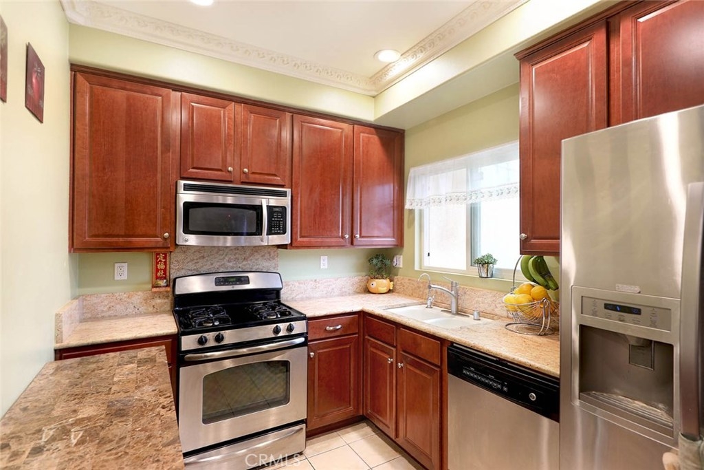 Brighton River Villas are a Newer Gated Community in Fountain Valley featuring Private Garden Patios and this home is in the back of the community overlooking the Valley with Mountain Views. Bright & Open Floor Plan Features Laminated Wood floors throughout, recessed lighting, crown moulding with Upgraded kitchen, that opens to the Greatroom, featuring Granite Counters & Stainless Steel GE Appliances and upgraded Designer Cabinetry. Upstairs you will find a Large Master Suite with Fabulous Walk In Closet, Double Sink Vanity plus two more generous size bedrooms and a Large Bonus Loft Area that can serve as an office or Fourth Bedroom. One Bedroom has Custom Built In Bookcases that stay with the home. Air conditioning, A Tankless Water Heater, Water Softener & Water Filtration System are other features you will enjoy as well as energy efficient dual glazed windows, Custom White Shutters on all windows and Custom Installed Storage Closets in the oversized attached two car garage plus third uncovered parking spot in front of unit. The large private and serene flagstone patio features a custom made Koi Pond and looks out over the Valley and Mountains! The owners have planted tangerine, fuji apple, 2 longan, a guava & persimmon trees! This spacious townhome truly has the feel of a single family home. The Low HOA fee provides Water, Trash, Sewer, Insurance, Gardener & a Monitored Fire Sprinkler System.