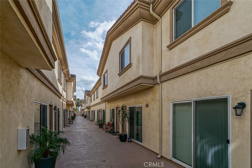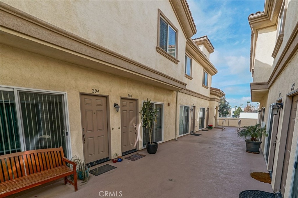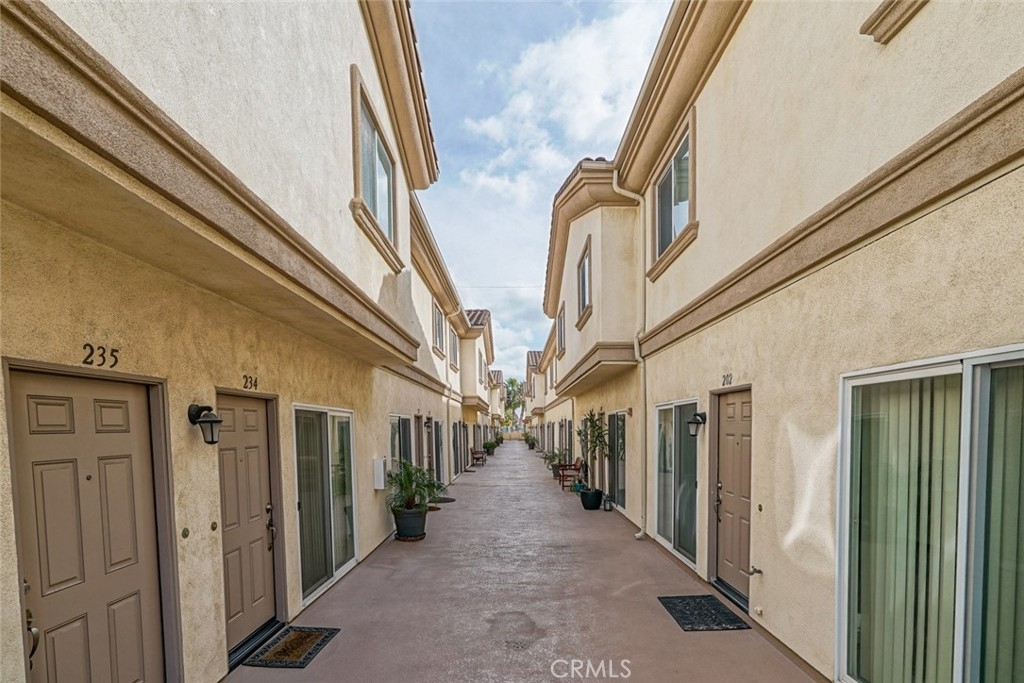 Welcome to Resort Style Living! Located in one of the most quiet areas of this community, RARELY available, this unit has one of only 5 private balconies. Other units with balconies have them open to neighbors on either side. With palm trees in your view, you'll be able to appreciate the beautiful sunsets that only Southern California has to offer! This beautiful home boasts 9' ceilings, spacious laundry room off the updated kitchen, with New Appliances, which include a 6 burner stove, Convection oven and Bosch Quiet Dishwasher. With granite countertops, custom backsplash, newly painted accent walls in the dining area, you'll feel like you're eating in a quaint eatery with a view off the balcony in your sights. Two generous sized bedrooms and bathrooms are located upstairs, with attic access for storage of all your holiday decorations, camping gear, etc. This very tech forward gated community houses many security cameras with the newest technology, which can be programmed to your cell phone, eliminating the need for gate remotes! Amenities include Tennis Courts, Racquetball, Pools, Water Aerobic Classes, Full Gym, Volleyball and a Restaurant where you can take in your favorite sports on TV! You'll never want to leave! But if you do, it's conveniently located near freeways, convenient shopping, beaches and much more! Checkout the Virtual tour and call for a private tour! ACT FAST! THIS ONE WON'T LAST!