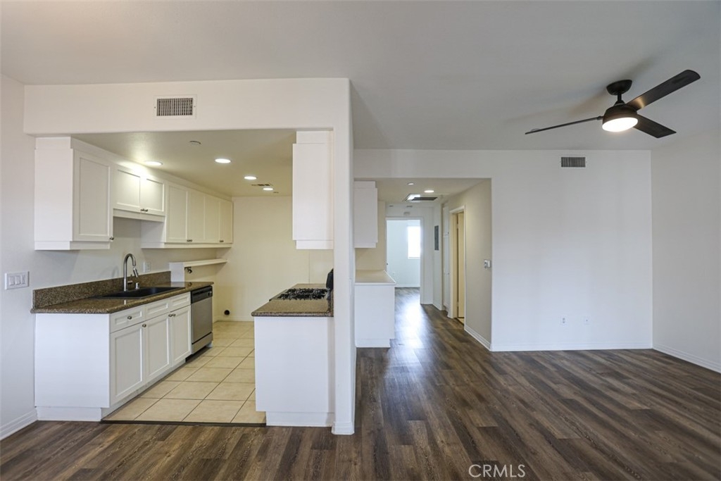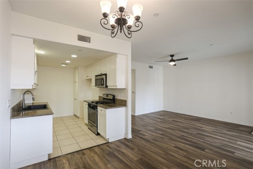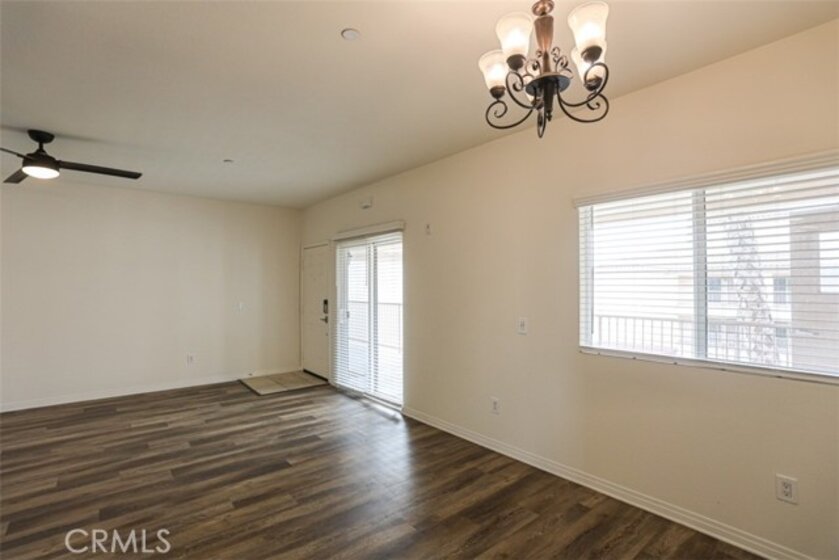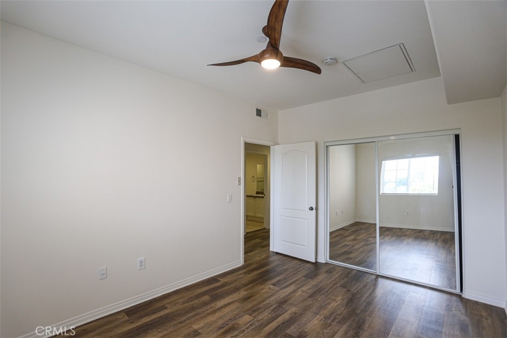 Welcome to this beautifully maintained top-floor end-unit condo in the highly desirable Los Caballeros community in Fountain Valley. Built in 2007, this 2-bedroom, 1-bath home offers 878 square feet of comfortable living space—perfect for first-time buyers or savvy investors. Step inside to find a bright, open layout featuring high ceilings, wood laminate flooring, and ceiling fans. The kitchen is equipped with granite countertops, wood-grain cabinetry, and stainless steel appliances, creating a stylish and functional space for everyday living. Additional highlights include central heating and air conditioning and in-unit washer and dryer hookups. This home is located in a small, private gated community of just 42 units, offering a peaceful atmosphere with a beautifully landscaped courtyard, BBQ area, and inviting patio seating spaces. The HOA provides exceptional value, covering water, hot water, trash, and even earthquake insurance—all in one monthly payment. Centrally located near freeway access, shopping, dining, and local parks. Don't miss this opportunity.