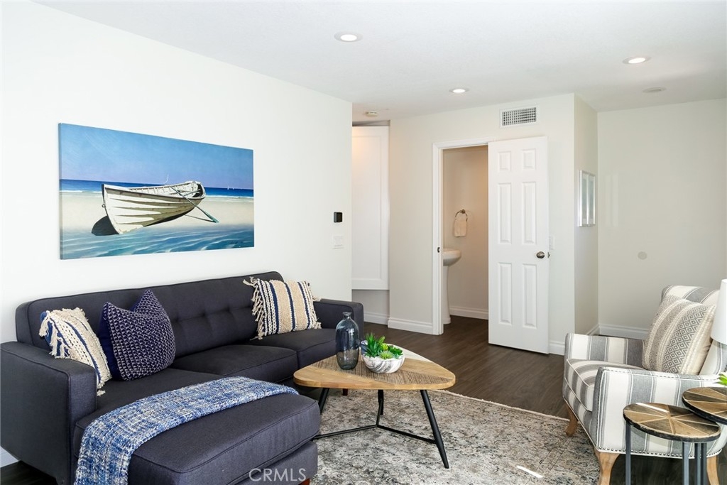 This is a fantastic Green Valley Townhome. So many features including Central Air, Dual Pane windows, smooth ceilings, a 2 car garage, recessed lighting, ceiling fans, new mirrored wardrobe doors, new interior paint and so much more. The unit has been remodeled with gorgeous Kitchen cabinets, 42" high counters, and newer vanities and toilets in the bathrooms. This unit also boasts a SEPARATE 215 SQ FT FAMILY ROOM with Sola-Tubes, recessed lighting, a French door out to the back patio, and direct access to the laundry room and 2 car garage. Super clean and ready to occupy. This is a must see!!! Green Valley features 3 pools, 2 clubhouses, 21 acres of private park, and 2 in tract, award winning Fountain Valley Schools, and year round activities for all