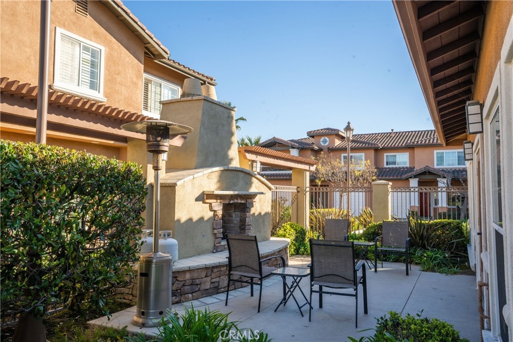 Welcome to Liberty at Founders Village, a friendly and vibrant 55+ community, with income restrictions, where easy living truly comes to life. This charming 2004-built townhome brings together comfort, style, and rare features, starting with its single-level layout, 1,328 sq ft of open living space, and an enclosed patio that’s uniquely special, found in only four units in the entire community. High ceilings and natural light set a bright, uplifting tone the moment the front door opens. Fresh paint, window shutters, wood laminate, and tile flooring add a clean, modern feel throughout. The living room centers around a cozy fireplace and blends seamlessly into the dining area and kitchen, creating a warm, inviting flow. The kitchen keeps things cheerful with white cabinetry, Corian countertops, plenty of space to prep and organize, a convenient serve-over bar, and a sunny breakfast nook that practically encourages slow mornings and hosts gatherings. The primary suite offers a calm, comfortable retreat with a large window, a generous walk-in closet, and a refreshed ensuite with dual sinks and a walk-in shower. The second bedroom and full bathroom work perfectly for guests, hobbies, or an office. A separate laundry room with built-in cabinetry adds a smooth layer of practicality to the home. Recently updated central heating and air keep things comfortable year-round, and the attached garage with tandem parking brings added convenience. Life in this community comes with some great perks: a sparkling pool, heated spa, clubhouse, outdoor BBQ area with a fireplace, and exterior maintenance handled for a carefree lifestyle. HOA dues are kept low at $308/month, and the neighborhood stays pet-friendly and welcoming with plenty of visitor parking. All of this comes in a prime Fountain Valley location: close to parks, the beach, shopping, dining, and convenient freeway access. The city of Fountain Valley will need to process the income qualification. A warm, light-filled home with standout features and an easygoing vibe. It is such a rare find in a community loved for its comfort and charm.